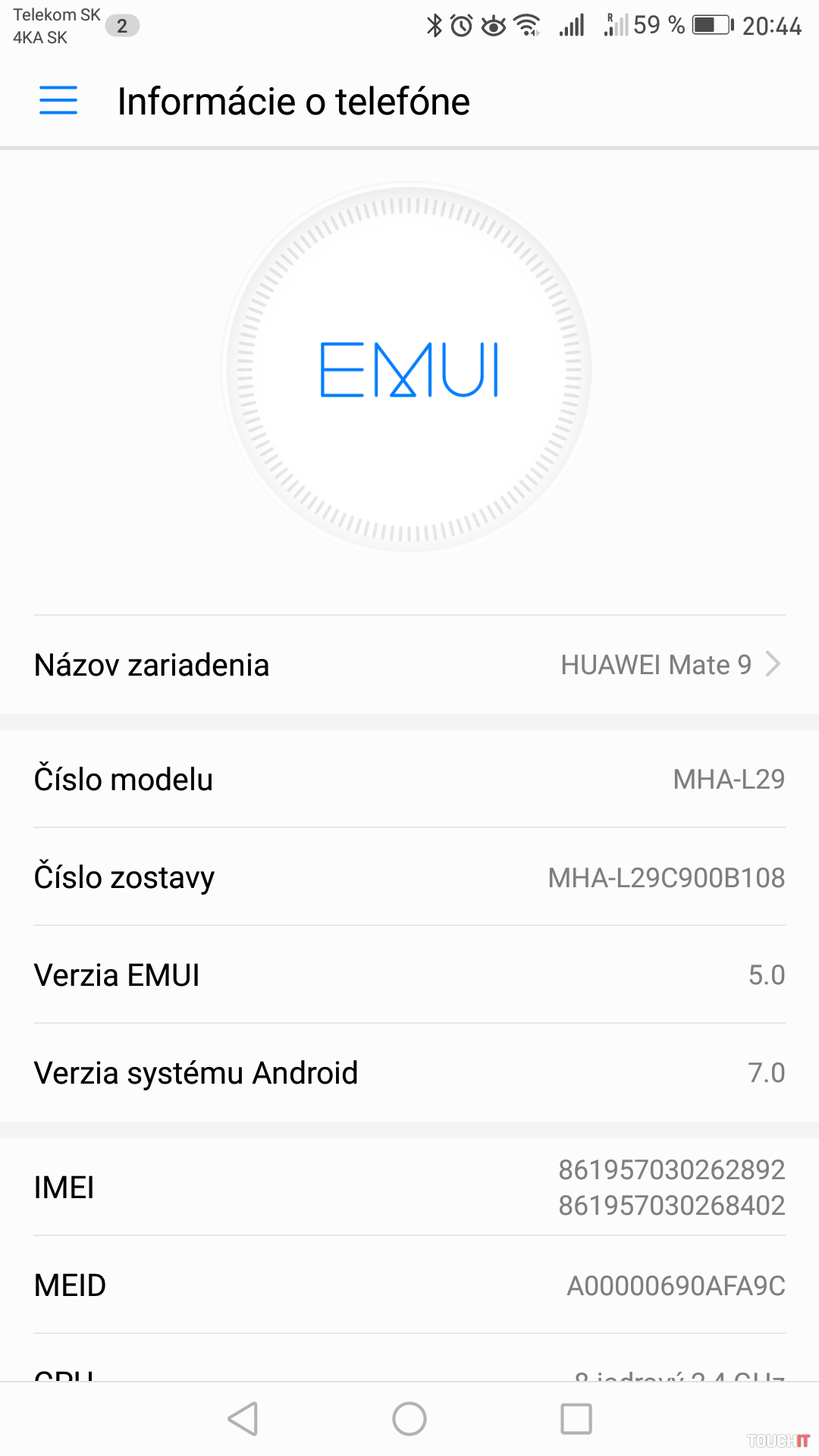 | Model telefónu | Huawei Mate 9 |