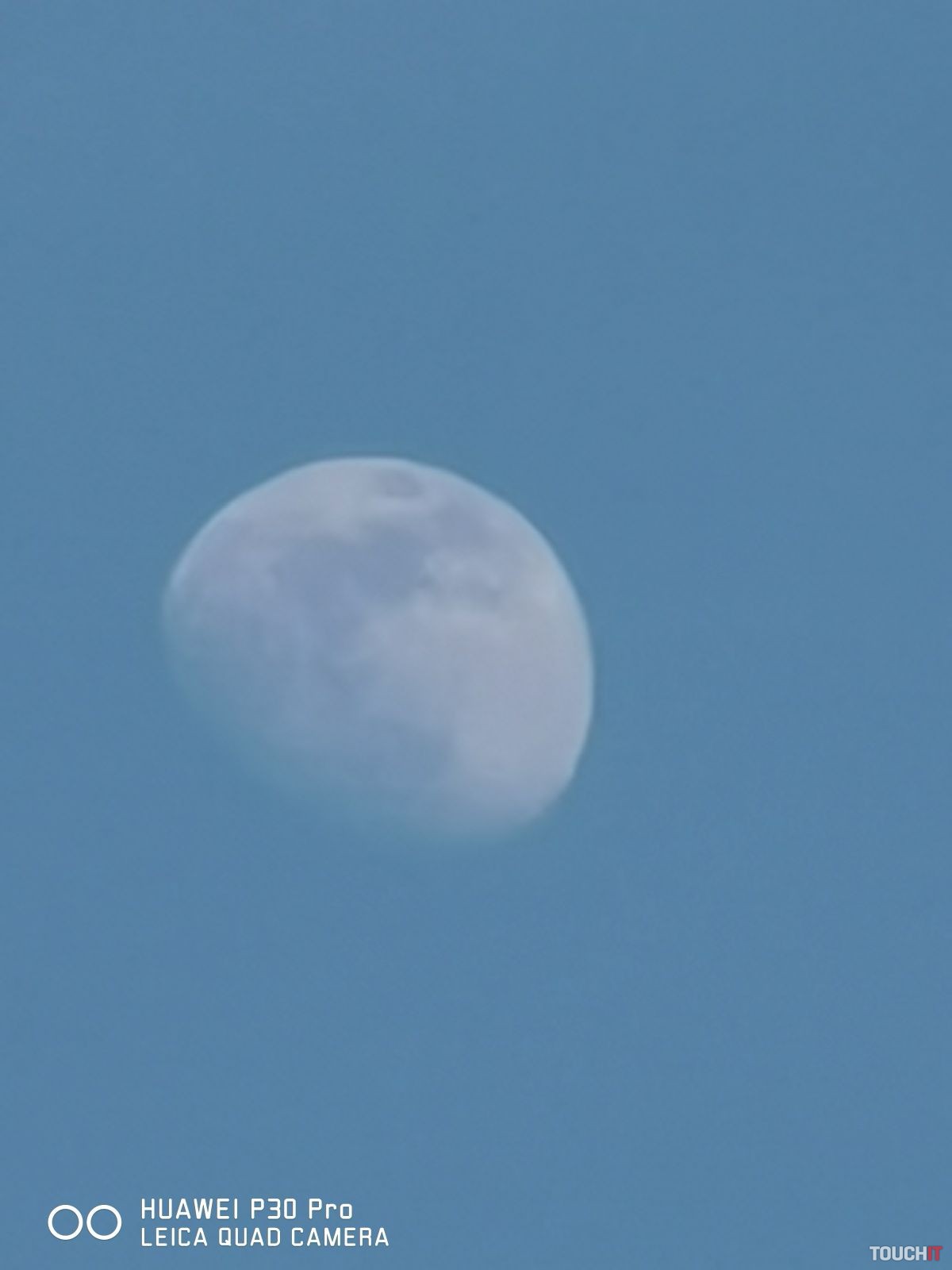 V recenzii sme párkrát spomenuli pojem bezstratové priblíženie. Ide o výrez v reálnom čase z toho, čo práve sníma fotoaparát s optickým priblížením. Využívajú sa určité softvérové algoritmy, aby sa dosiahol až 10× zoom s minimálnou stratou kvality. A ešte jedno číslo. P30 Pro má až 50-nasobný digitálny zoom. Ani s takouto hodnotou sme sa doteraz medzi smartfónmi nestretli a je to dosť na to, aby ste si odfotili mesiac, ktorý bude zaberať takmer celú fotku.