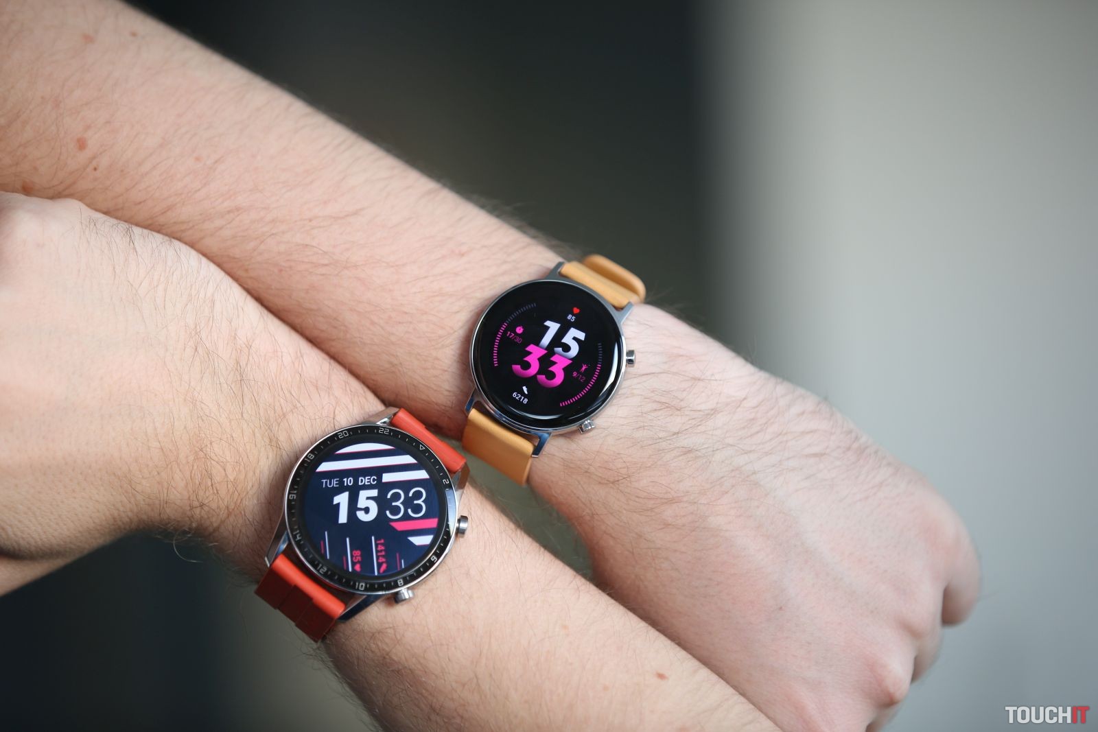 Huawei Watch GT sú stále jedny z najkrajších inteligentných hodiniek na trhu a GT 2 idú v tomto smere ešte o krok ďalej. Na testovanie sme mali verziu Classic v 46 mm vyhotovení a s koženým remienkom a konštatujeme, že vyzerajú skvelo. A sekne im aj oranžový silikónový remienok, ktorý sme si zakúpili a používali sme ho pri cvičení.