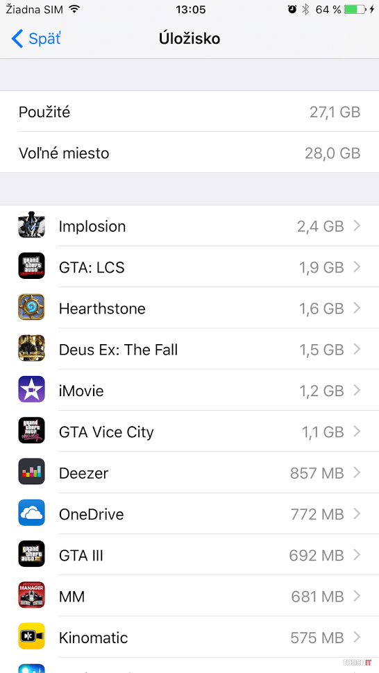Nástroj Fotky chválime. Aplikácia totiž automaticky zazálohuje fotografie z iPhonu do počítača a na základe vášho rozhodnutia ich skomprimuje, nahrá späť do telefónu alebo iba zachová zálohu v PC. Takýmto spôsobom môžete znížiť využitie úložiska fotkami až o 75%. Oceníte to v prípade, ak si chcete v zariadení uchovávať veľké množstvo fotiek. Nástroj neoptimalizuje screenshoty obrazovky, iba reálne fotografie. Rozlíšenie sa nemení a veľkosť fotiek sa v našom prípade znížila z 1,7 MB na 480 kB. Rozdiely v kvalite sme nepostrehli. Podobnú funkciu ponúka aplikácia Avast Photo Space. Tá však vyžaduje zálohu fotiek do cloudu a potom zmenší ich rozlíšenie v telefóne. Niekomu môže viac vyhovovať riešenie programu iMyfone Umate. Ďalší nástroj umožňuje zmazanie súborov väčších ako 5 MB. iMyfone Umate počas nášho testovania nenašiel 180 MB video, ktoré sme mali uložené v aplikácii VLC. To však môže byť dané obmedzeniami platformy iOS. Veľké videá v systémovej aplikácii Fotky našiel. Opäť je tu možnosť zálohovať dáta. Nástroj Aplikácie považujeme za zbytočný, ale pre niekoho je možnože takéto odinštalovanie aplikácií jednoduchšie v porovnaní s priamym odinštalovaním na domovskej obrazovke. K dispozícii máte prehľad o veľkosti jednotlivých appiek. Program v našom prípade ukazoval zlú veľkosť aplikácie Implosion (16 GB, správne je 2,4 GB), ide o kozmetickú chybu.K dispozícii je aj bezplatná verzia s obmedzenou funkcionalitou