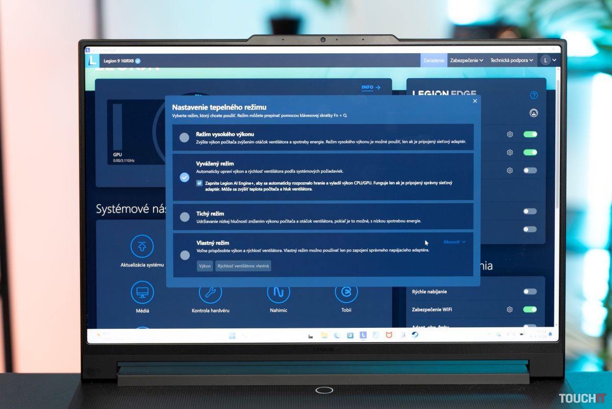 Umelú inteligenciu si môžete zapnúť alebo vypnúť v nastaveniach výkonu v programe Lenovo Vantage. Odporúčam, aby ste sa s ním zoznámili, pokiaľ si kúpite tento notebook alebo iný Lenovo Legion.