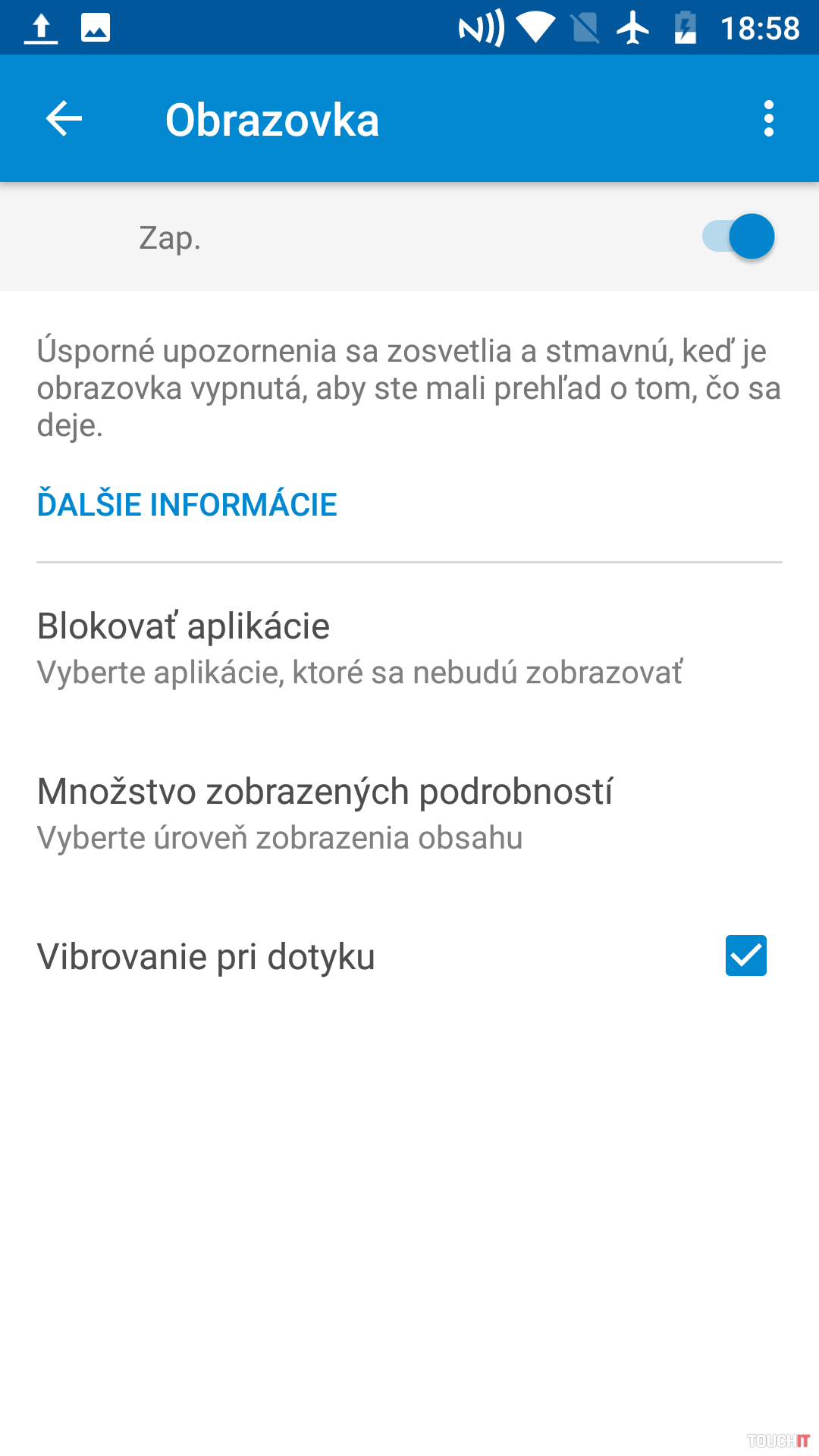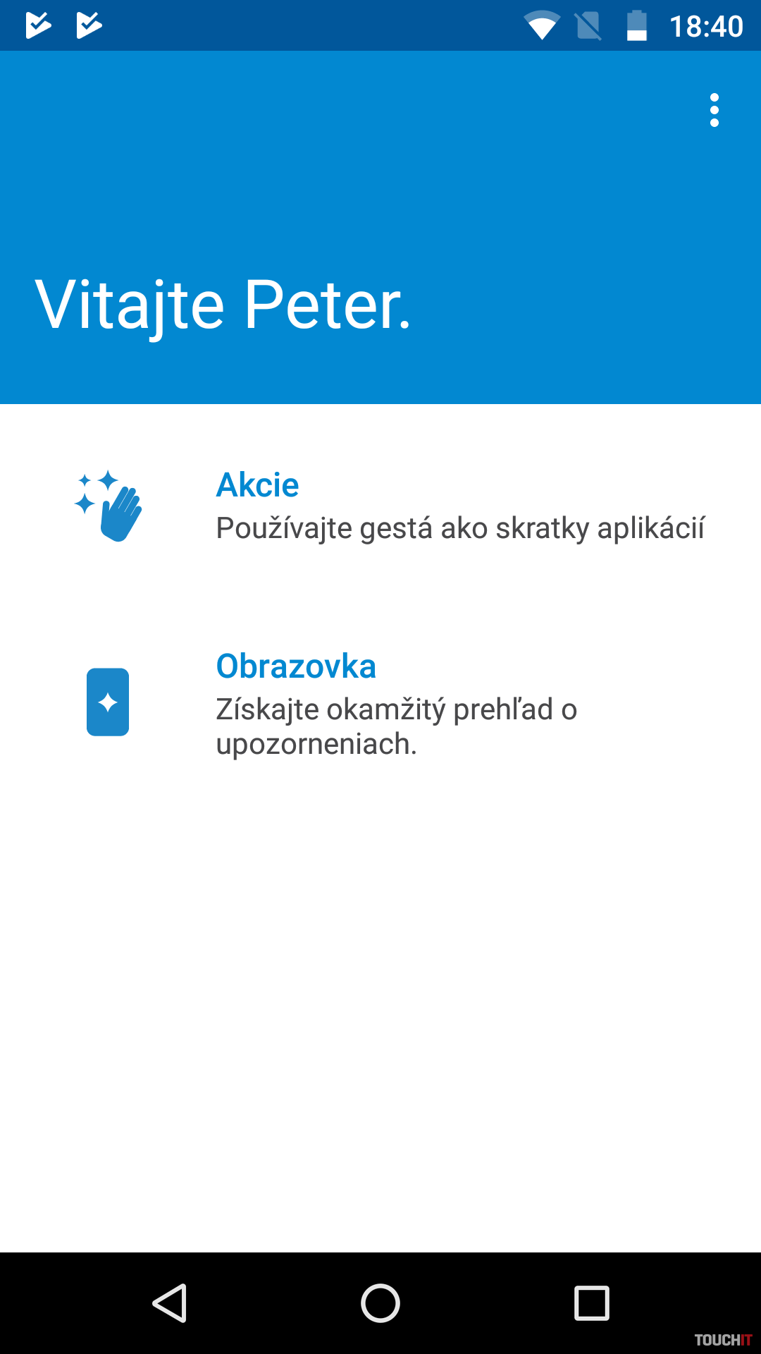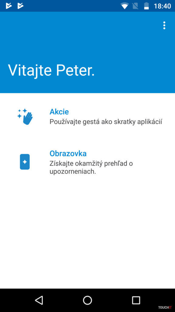 Softvér, konektivita Pri prvom kontakte s G5 Plus nás zaujal systém jeho svižnosťou a odladenosťou. V zariadení je predinštalovaný čistý Android 7.0 s vylepšeniami od Lenova, ktoré sú integrované v samotnej aplikácii Moto. Po otvorení tejto aplikácie sa dostávame k položkám Akcie a Obrazovka. V tomto prípade sa jedná asi o jediné výrazné rozšírenie zo strany Lenova.V časti Obrazovka si môžete nastaviť zobrazenie dôležitých informácií na zhasnutej obrazovke, kedy sa rozsvieti zopár pixelov, aby informovali o nových udalostiach. Vyvolanie obrazovky je v momente notifikácie na novú udalosť alebo ak je zaznamenaný pohyb zariadenia. Takto je suplovaná funkcia informačnej LED diódy, ktorá je pravdepodobne zámerne nevyužívaná. Jediné stretnutie sme mali so signalizáciou pri úplnom vybití batérie. Nachádza sa v mriežke reproduktora.V časti Akcie môžeme využívať gestá na prístup k aplikáciám. Najvýznamnejší prvok je „Ovládanie jedným dotykom„. V tomto prípade ide o ovládanie smartfónu čítačkou odtlačkov prstov. Pri zvolení tejto funkcie sa vypnú softwarové tlačidlá systému Android pre navigovanie v systéme, čím nám narastie aj zobrazovacia časť displeja a zlepší sa ergonómia celého prostredia. V tomto režime nie je možné zmenšiť displej ťahom zospodu, nakoľko indikačná zóna pre túto funkciu sa vypnutím softvérových ovládacích tlačidiel odstráni.