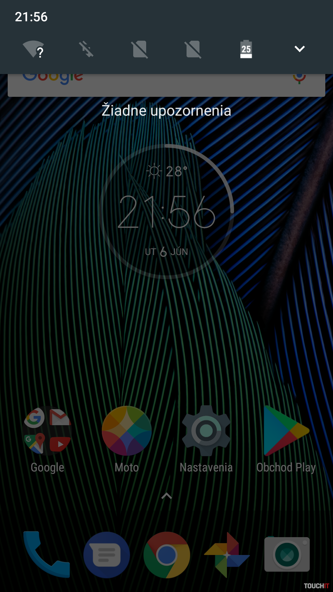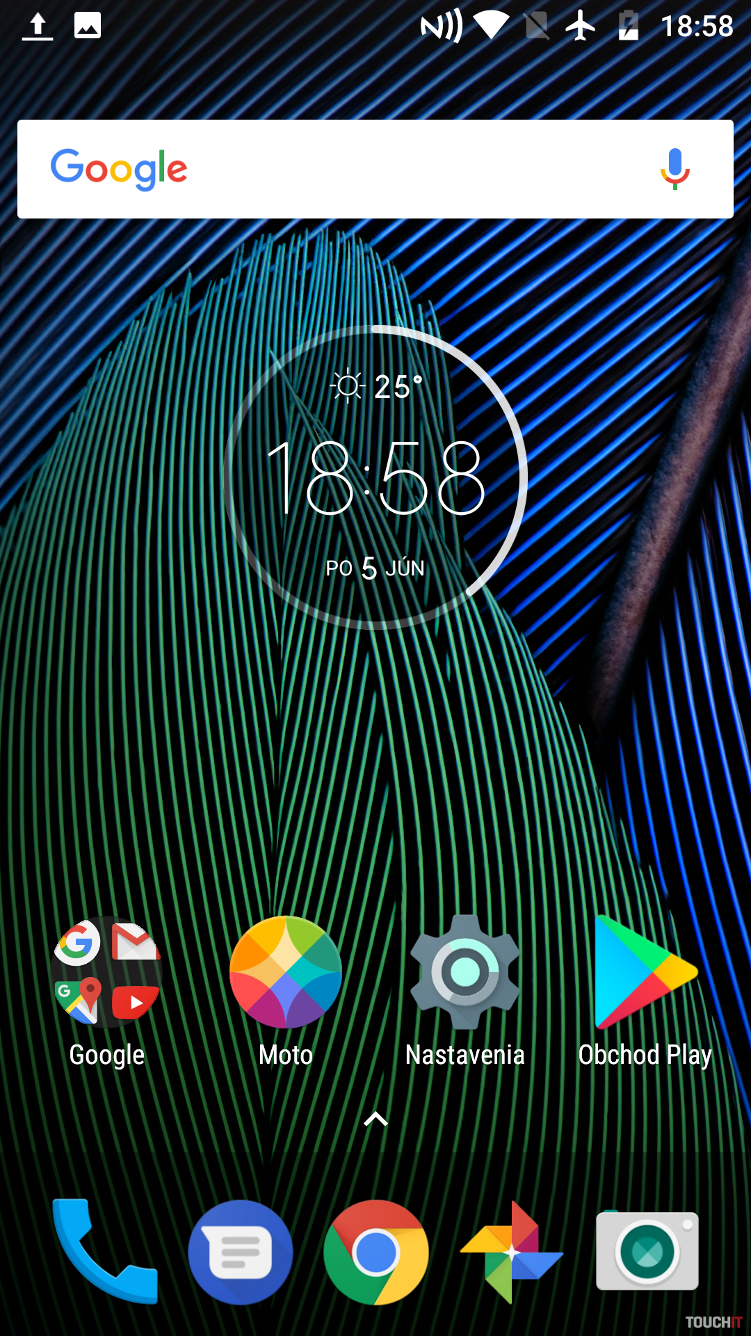 Aplikačná výbava v G5 Plus je tiež čo najčistejšia. Dokonca pre prácu s fotkami nenájdeme ani samotnú aplikáciu, ale je využívaná služba Google Fotky. Niekomu to môže vyhovovať. Posunom z domácej obrazovky do strany sa dostaneme do ponuky asistenta Google Now. Netradične sa dostaneme aj do ponuky aplikácií a to posunom zo spodnej strany obrazovky po vzore smartfónov Google Pixel.