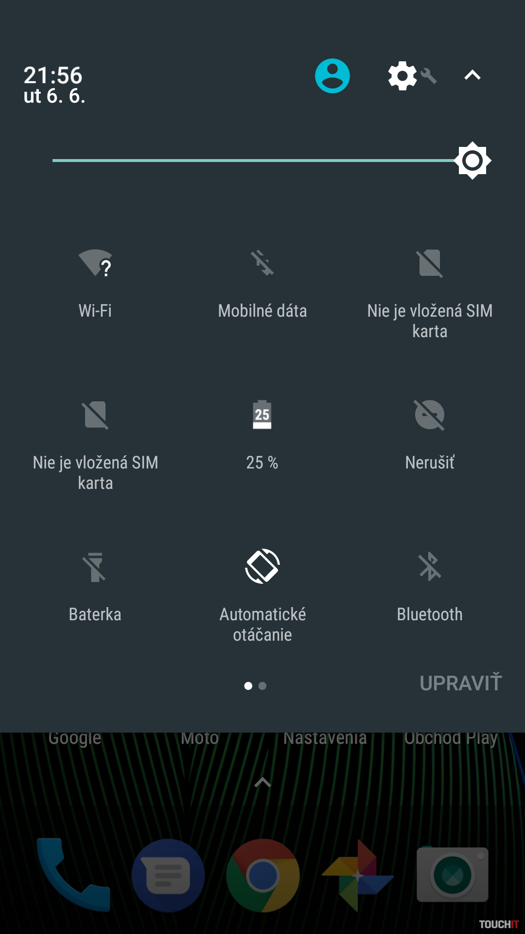 posun doprava – multitaskingTreba dodať, že ovládanie cez režim „Ovládanie jedným dotykom“ vyžaduje malý tréning. Niekoľko krát sa nám stalo, že sme požadované gesto spravili nedostatočne dlho a tým pádom sa vyvolala akcia, ktorú sme nemali v pláne. Ďalšie možností Moto Akcie – potrasením zariadenia dvakrát sa zapne svietidlo, otočenie zariadenie pre režim Nerušiť, rýchly prístup k fotoaparátu otočením zariadenia, ukončenie vyzváňania zodvihnutím zariadenia.