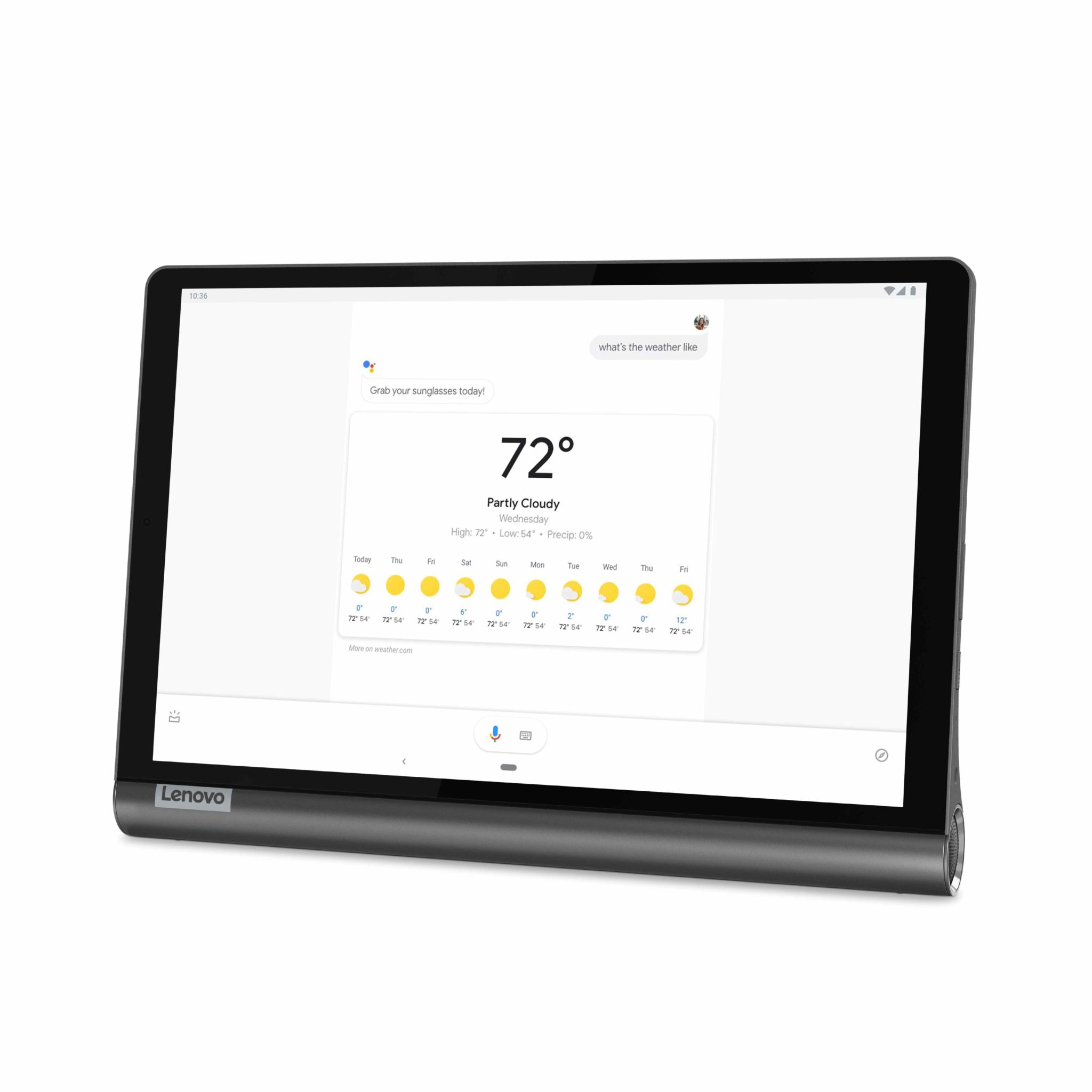 Lenovo Yoga Smart Tab má 10,1-palcový IPS displej s rozlíšením 1920 × 1200 pixelov. Kvalita je dobrá a zodpovedá cene zariadenia. Zabudované reproduktory sú špičkové, ocenili sme najmä hĺbku v rámci reprodukcie zvuku. V tomto smere môže nový Yoga Tab konkurovať aj výrazne drahším tabletom. Kvalitné reproduktory sú v tomto prípade nutnosťou, keďže tablet budete využívať aj ako inteligentný displej. Dobrú kvalitu ponúkajú aj zabudované mikrofóny, ktoré boli schopné reagovať na náš hlas z diaľky štyroch a viac metrov. Opäť ide o nutnosť, aby ste mohli na Google Asistenta rozprávať cez celú izbu. V rámci testovania sme si všimli, že Asistent často ignoroval náš povel „Hey Google“, avšak na „OK Google“ reagoval spoľahlivo vždy. Yoga Smart Tab obsahuje zabudovaný stojan, ktorý umožňuje využívať tablet v rôznych režimoch. Bočný valček umožňuje pohodlné držanie v jednej ruke, napríklad pri čítaní. Tablet chválime aj za dobrú výdrž počas používania a rozumnú výbavu z hľadiska RAM a úložiska. Procesor by sme však ocenili o niečo rýchlejší, Snapdragon 439 nedisponuje dostatočným grafickým výkonom na hranie náročnejších hier v rozumnej kvalite. Tablet má vo výbave aj 3,5 mm jack.