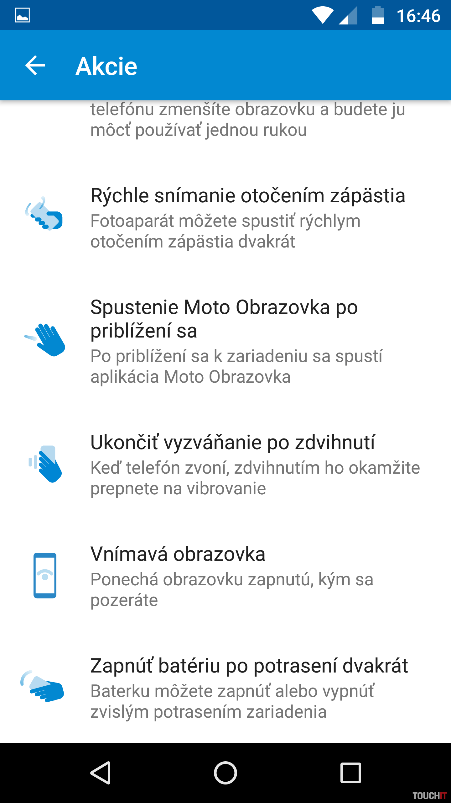 Čistý AndroidIgnorujúc hrúbku telefónu a moduly, o ktorých podrobnejšie píšeme nižšie, hlavným dôvodom, prečo zvažovať Moto Z, je čistý Android. Na prvý pohľad sa to zdá ako banalita, ale množstvo používateľov preferuje čistý Android. Kolega Mišo Reiter to síce okomentoval slovami, že v telefóne naozaj nič nie je a musí si potrebné aplikácie doinštalovať. Z môjho pohľadu je to však výhoda – radšej si doinštalujem aplikácie, ktoré chcem, ako by mi mali v telefóne napevno zavadzať aplikácie, ktoré nechcem. Avšak, nejde iba o počet predinštalovaných aplikácií. Čistý Android sa prejavuje minimálnymi zásahmi do systému, takže ho nezaťažujú žiadne nadstavby ani doplnky. Výsledkom je skutočne bezproblémová prevádzka systému a výborná optimalizácia. Je to cítiť na reakciách systému aj na výdrži batérie. V tomto smere patria Moto a Xperia telefóny k tomu najlepšiemu, čo je aktuálne dostupné na trhu. Nielen z hľadiska plynulosti systému, ale aj jeho spoľahlivosti. Moto prináša Android v čistej podobe a používateľský zážitok je výborný. Lenovo v prípade radu Moto obohatilo systém iba o výborný widget s hodinami, ktorý obsahuje rýchly prístup do kalendára a k predpovedi počasia. Súčasťou je takisto aplikácia Moto, ktorá umožňuje nastaviť a používať rôzne skratky a gestá. Vo väčšine prípadov ide o užitočné doplnky.