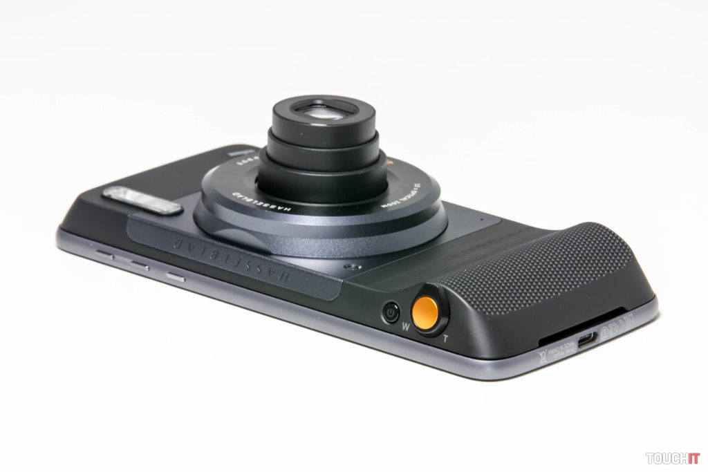 Špecialitou je modul Hasselblad True Zoom. Ten rozširuje fotoaparát v telefóne o xenónový blesk a 10-násobný optický zoom. Z pohľadu smartfónu získate bezkonkurenčnú výbavu, ale zrkadlovku vám Moto Z s Hasselblad modulom nenahradí. Optický zoom je výborná funkcia, treba si však uvedomovať jej limity. Pri fotení statických objektov využijete priblíženie naplno, v prípade pohyblivých objektov je problém fotiť fotografie tak, aby neboli rozmazané – s tým však má pri priblížení problém väčšina klasických fotoaparátov, treba použiť zrkadlovku. V praxi sme si to vyskúšali na módnej prehliadke. Modul stojí 299 eur.