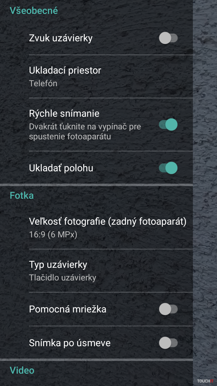 Rýchle spustenie aplikácie fotoaparátu viete vyvolať dvojitým stlačením tlačidla napájania. Ako druhý hardvérový prvok pri ovládaní fotoaparátu sa využívajú tlačidlá pre ovládanie hlasitosti. Tie poslúžia ako spúšť. Nastavenia fotoaparátu sú základné. V ponuke okrem fotenia, nahrávania HD videa pri 30 snimkoch za sekundu, nájdete už iba mód pre vytvorenie panorámy.