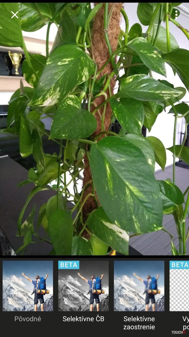 Selektívne zaostrenie– robí pekný efekt rozmazaného pozadia. Sila rozmazaného pozadia sa dá nastaviť. Zaujímavá vec je na tom to, že tieto úpravy môžete nechať na neskôr. ČB režim – na jednej fotke sa dá vybrať, ktorá časť fotografie bude farebná a ČB. Ideálne pri kombinovaní na fotke so selektívnym zaostrením. Opäť postačí len ťuknúť na objekt. Zvyšok sa dopočíta automaticky. Hlboký obraz – vďaka fotografii, ktorú odfotíte v režime hlbokého obrazu, môžete neskôr meniť pozadie za objektom v popredí. Automatika nie je neomylná ale funguje dobre. Ide viac-menej o doplnkový efekt, ktorý má pobaviť.