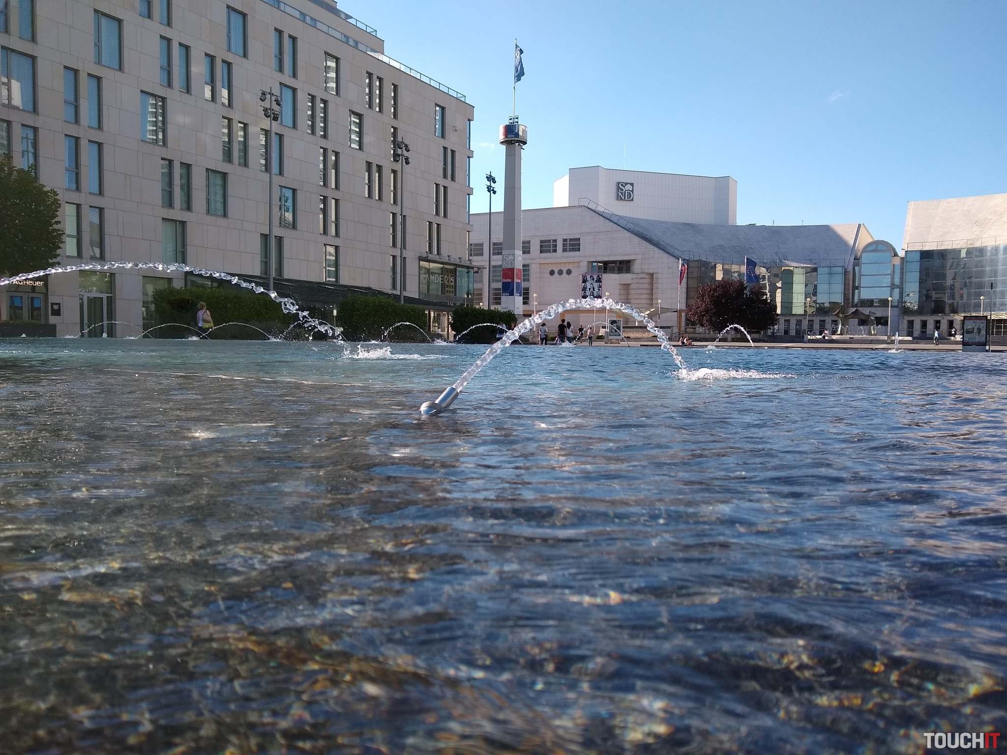 Na obrázku porovnanie zadnej strany s modelom moto e5, ktorý sa vyznačuje silnou batériou a super cenou. Prečítajte si jeho recenziu. Poznať to je pri tmavších scénach. Tie boli s týmto smartfónom veľmi dobré.  Šum tu bol, s tým ale treba počítať. Skreslenie farebných odtieňov takisto. Pri večerných fotkách treba držať telefón stabilne a aj po dofotení chvíľu postáť na mieste bez pohnutia telefónu. Občas sa nám stalo, že sme boli rýchli a fotky boli rozmazané. So šmuhou presne po vzore sklopenia telefónu. Niektoré farby na denných fotkách vyzerali vyblednuté, typicky to vidno na scéne vodotryskov na našich testovacích fotkách.