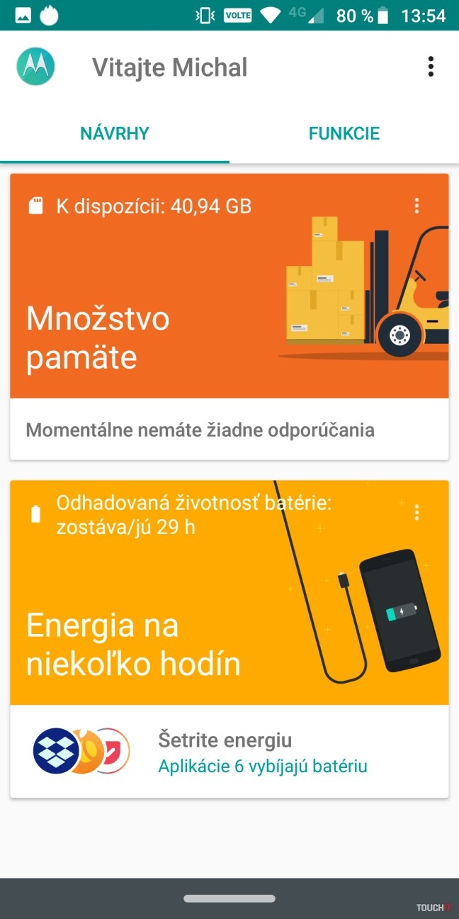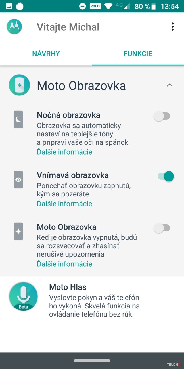 My sme telefón ovládali takto a nemali sme s tým žiadne ťažkosti. Všetko fungovalo, ako malo. Stále zostávajú všetky ostatné možnosti, ako u bežnej nadstavby Moto, teda aktivovanie fotoaparátu preklápaním smartfón, rozsvietenie LED svetla zatrasením alebo napríklad nočná obrazovka, či rozsvietenie inverznej obrazovky keď príde na smartfón nejaká udalosť. Podrobnejšie sme sa Moto doplnkom venovali v tomto článku. Základom systému je čistý Android. Nadstavba Moto je viac iba ako funkčná časť na praktické rozšírenie využitia senzorov, nie je to launcher a ani neposkytuje takéto funkcie.