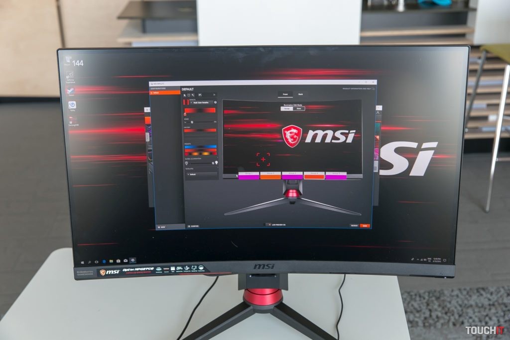 MSI podporuje podsvietenie monitora softvérovou technológiu SteelSeries Engine. V praxi to znamená výbornú softvérovú podporu a tiež aj skvelú synchronizáciu s ďalšími zariadeniami tejto značky. Herné príslušenstvo SteelSeries patrí medzi naše obľúbené, takže sme si testovanie monitora užili v kombinácii s mechanickou klávesnicou, myšou, špeciálnou podložkou pod myš a slúchadlami. Všetky tieto zariadenia pritom podporovali podsvietenie cez SteelSeries Engine a dokázali sa zladiť.