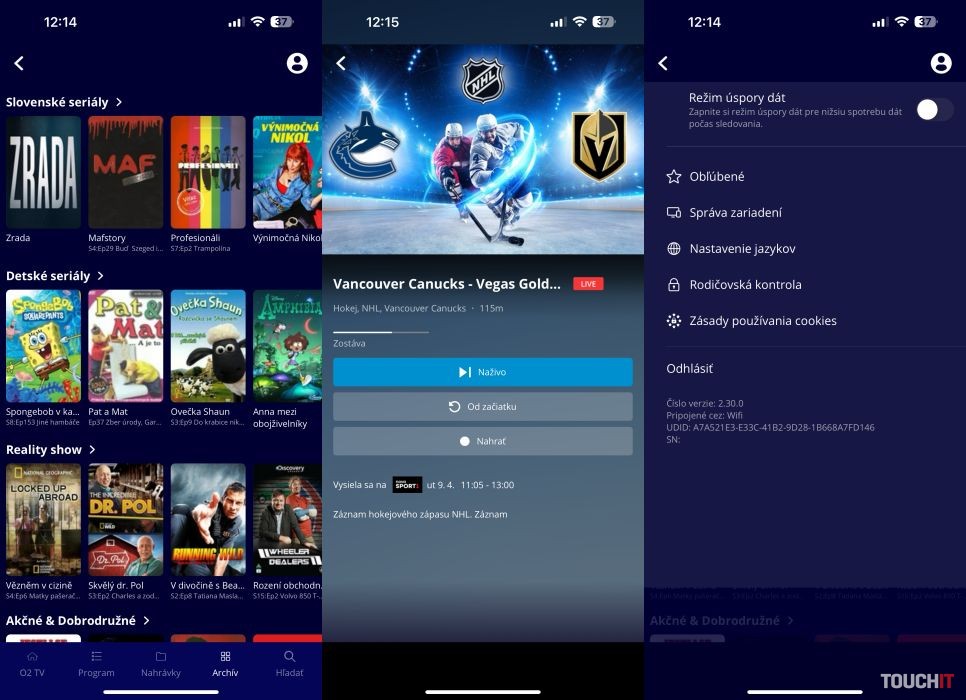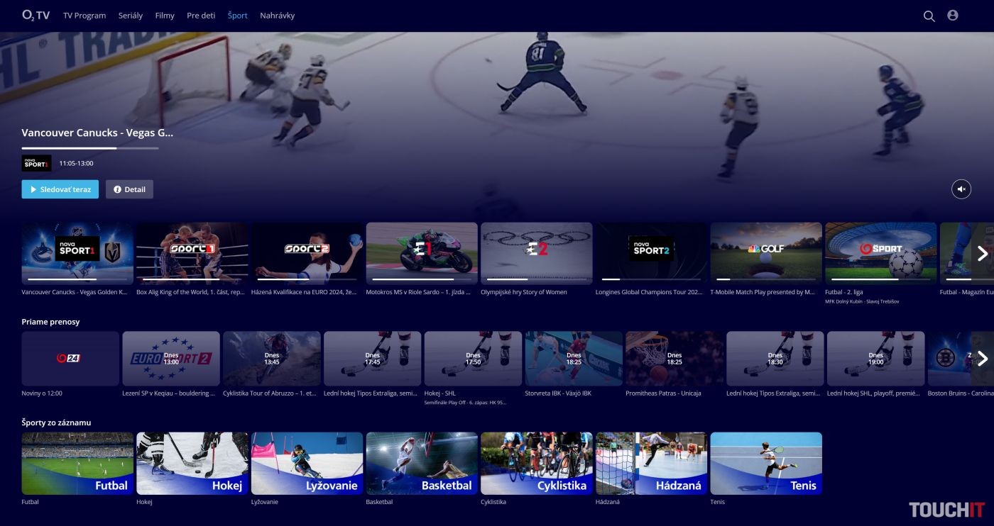Potešila ma samostatná obrazovka so športovým obsahom (živé prenosy a obsah v archíve), vďaka ktorej som rýchlo kontroloval, či sa hrá futbalový alebo hokejový zápas. Športové prenosy som si následne rýchlo spustil bez toho, aby som sa musel prepínať medzi TV kanálmi alebo hľadať daný zápas v TV programe. V tomto O2 TV chválim. Platí to pre všetky platformy, kde som službu používal.