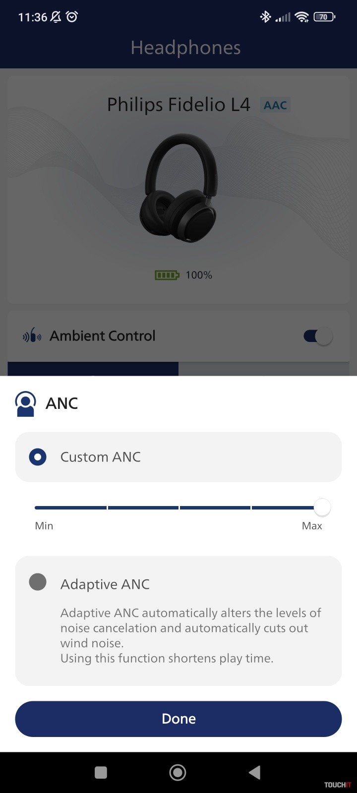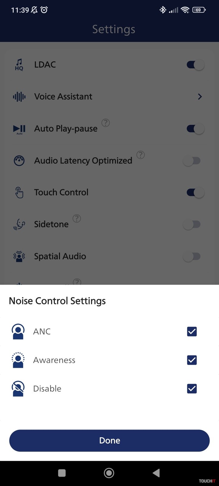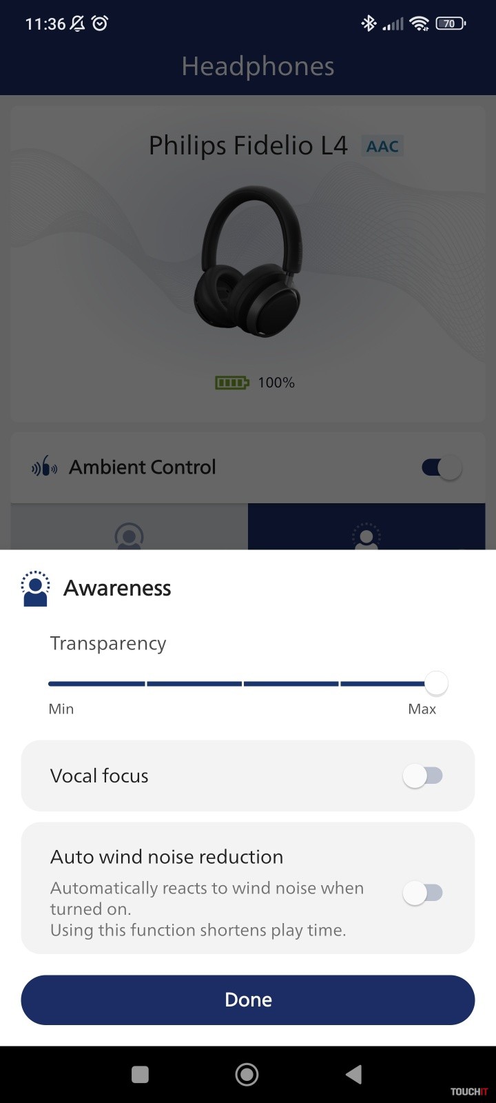 ANC režim sa dá nastaviť ručne alebo ho nechať korigovať intenzitu na základe okolitého hluku. Ambientný režim Awareness má takisto nastavenie intenzity a tiež zameranie na hlas a možnosť aktivovať redukciu proti vetru.