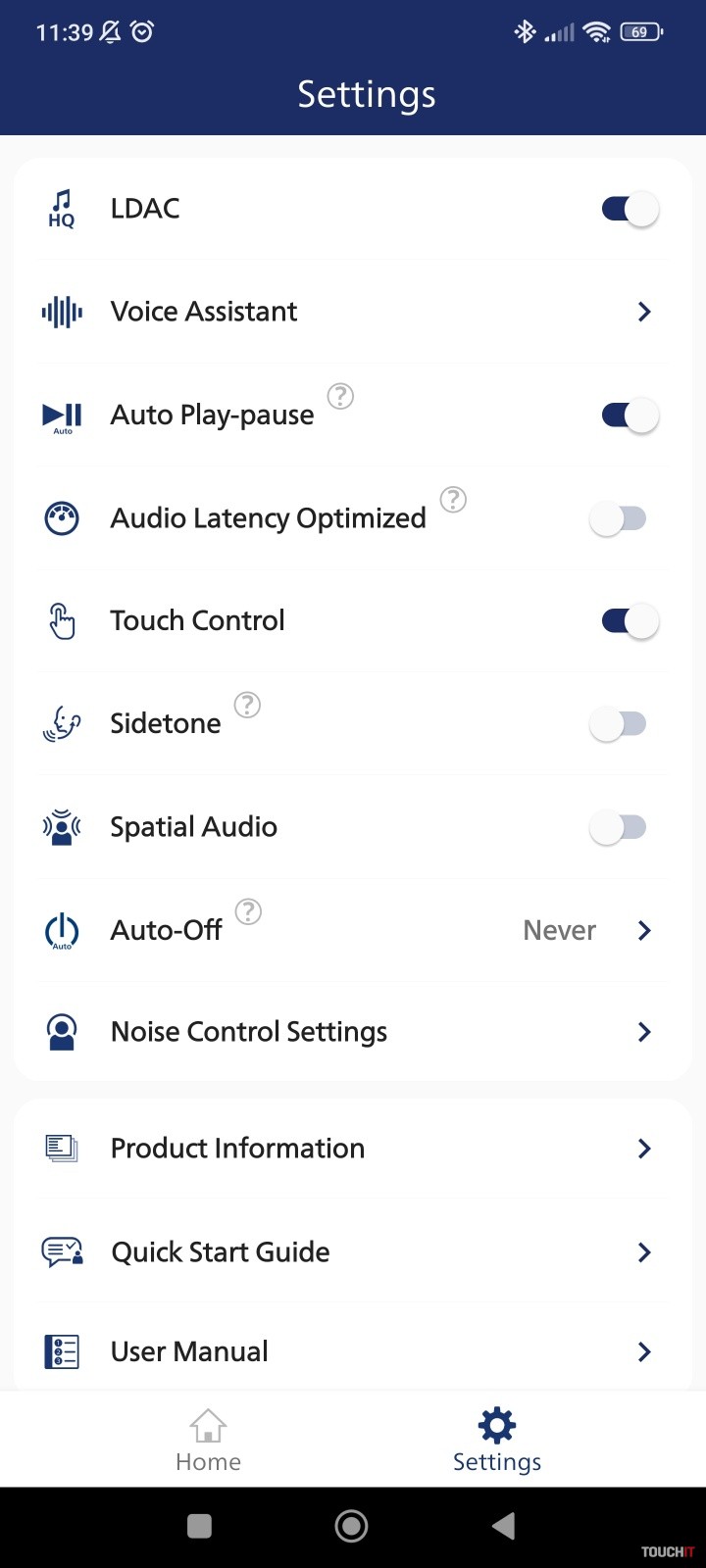 Cez Bluetooth sa dá použiť kodek LDAC. Ten je treba najprv povoliť v aplikácii a po novom spojení slúchadiel so smartfónom vám bude ukazovať možnosť použiť LDAC namiesto AAC. Softvér umožňuje dodatočné nastavenia a prispôsobenie dostupných funkcií.