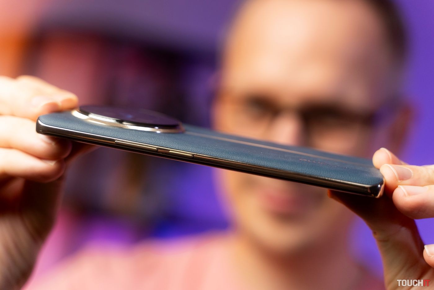 Realme 12 Pro+ 5G treba pochváliť za spracovanie zadnej strany, ktorá púta pozornosť a subjektívne vyzerá skvelo. Chrbát je z umelej kože, ktorá je v strede rozdelená pozláteným pásikom. Ten lemuje obvod symetricky umiestneného fotografického modulu. Ako celok to funguje výborne a telefón vďaka tomu pôsobí ako vlajková loď.