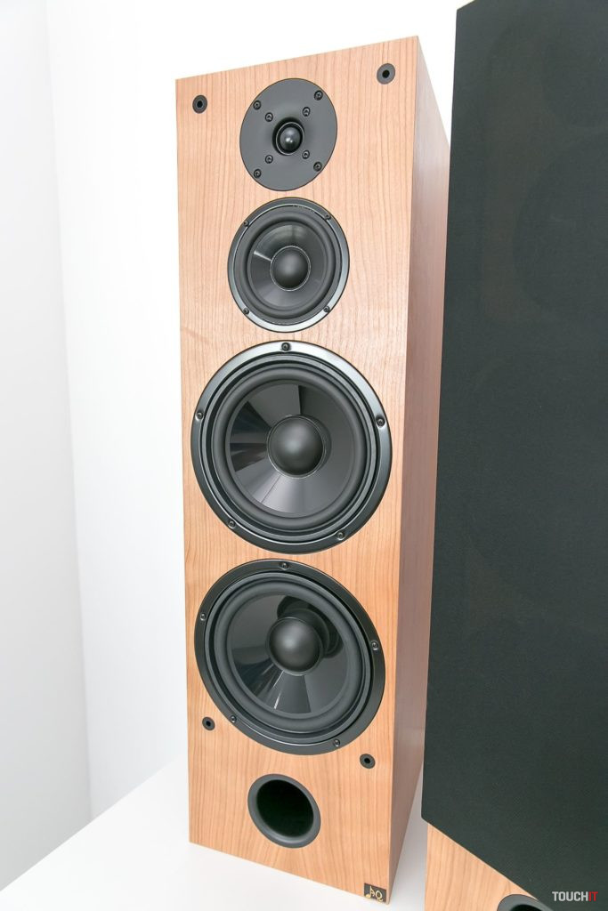Zvukovo je zostava dimenzovaná tak, aby pokryla čo najlepšie svoj frekvenčný rozsah cez svoju trojpásmovú zostavu meničov. Je to na zvuku poznať, najmä ak máte v priamom porovnaní možnosť vypočuť si vzápätí aj Labradory. Dvojica basových meničov v spodnej časti vytvára silné basy, ktoré sa vďaka basovému výduchu a celkovému umiestneniu v spodnej časti dobre šíria. Pri vyššej úprave ekvalizéru v hranici nízkych tónov budete cítiť jemné dunenie podlahy. Kto, chce môže si vďaka nim vytvoriť silnú atmosféru. Výšky sú vynikajúce, najmä vďaka samostatnému meniču v hornej časti. Celkovo je na tejto zostave cítiť, že je trojpásmová a nemusí si tri pásma deliť medzi dva meniče. Špeciálne upozorňujeme na stredné oblasti zvukového pásma. Sú vynikajúco vykreslené. Toto sú presne tie reproduktory vďaka ktorým sa oplatí používať hudbu vo vysokej kvalite. Práve vďaka nim budete pociťovať tóny, ktoré inak bývajú potlačené alebo nie sú až tak zreteľné rozpoznateľné. Technické parametre