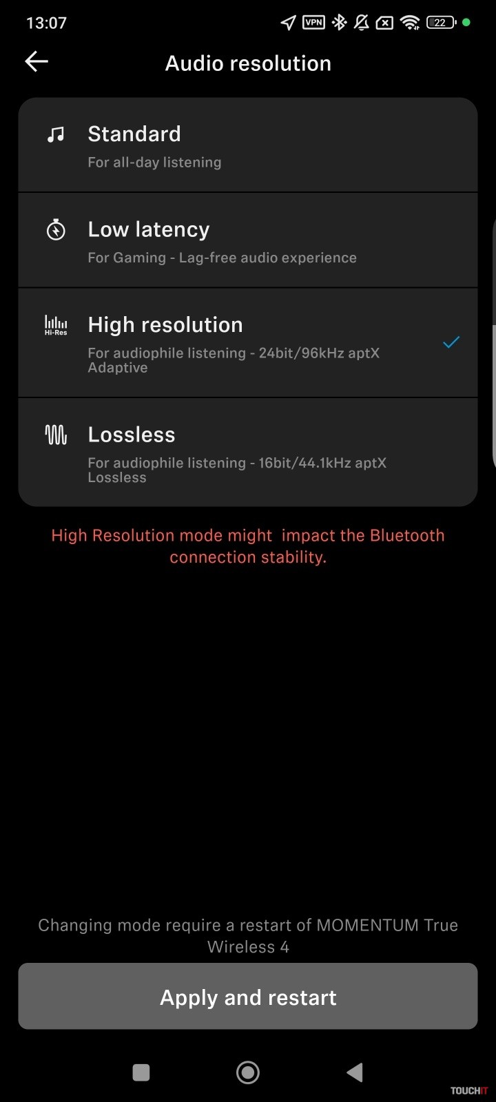 Prakticky nevyhnutnosťou v tejto cenovej kategórii je podpora kodekov s vysokým rozlíšením. Ide o aptX Adaptive a aptX Lossless a takisto podporu softvérovej aplikácie. Tá má široké možnosti nastavenia slúchadiel v oblasti zvuku, ovládania alebo napríklad automatického nastavenia režimu na základe vašej lokality.