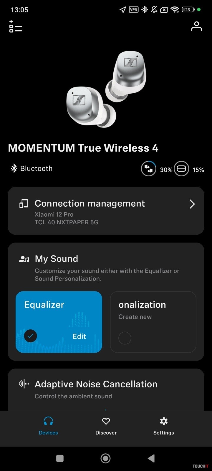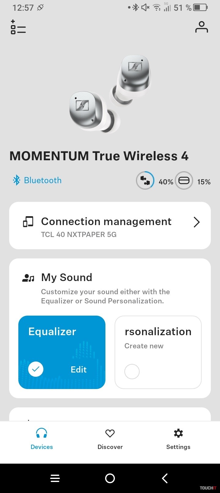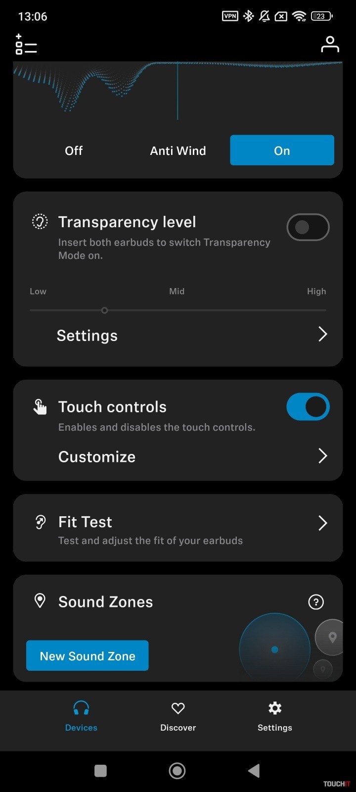 Slúchadlá majú prepracovanú aplikáciu, ktorá zobrazuje stav nabitia slúchadiel ako aj nabíjacej škatuľky. Súčasťou personalizácie je možnosť navrhnúť si, čo všetko sa bude na hlavnej stránke aplikácie zobrazovať. Takto si môžete rozvrhnúť zobrazenie dlaždíc podľa seba. Štandardne je k dispozícii nastavenie zvukových profilov, vrátane ekvalizéra s možnosťou zosilnenia basového účinku.