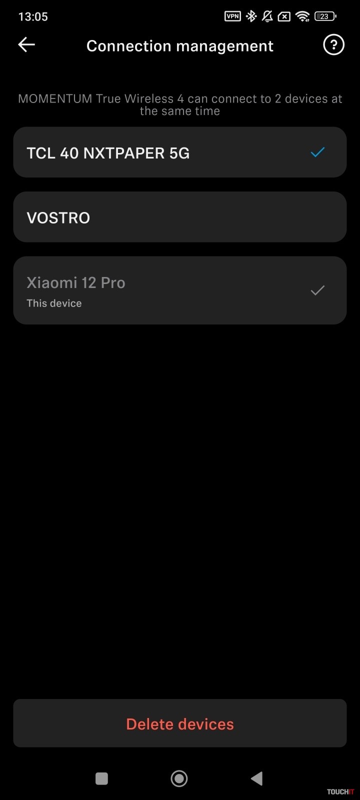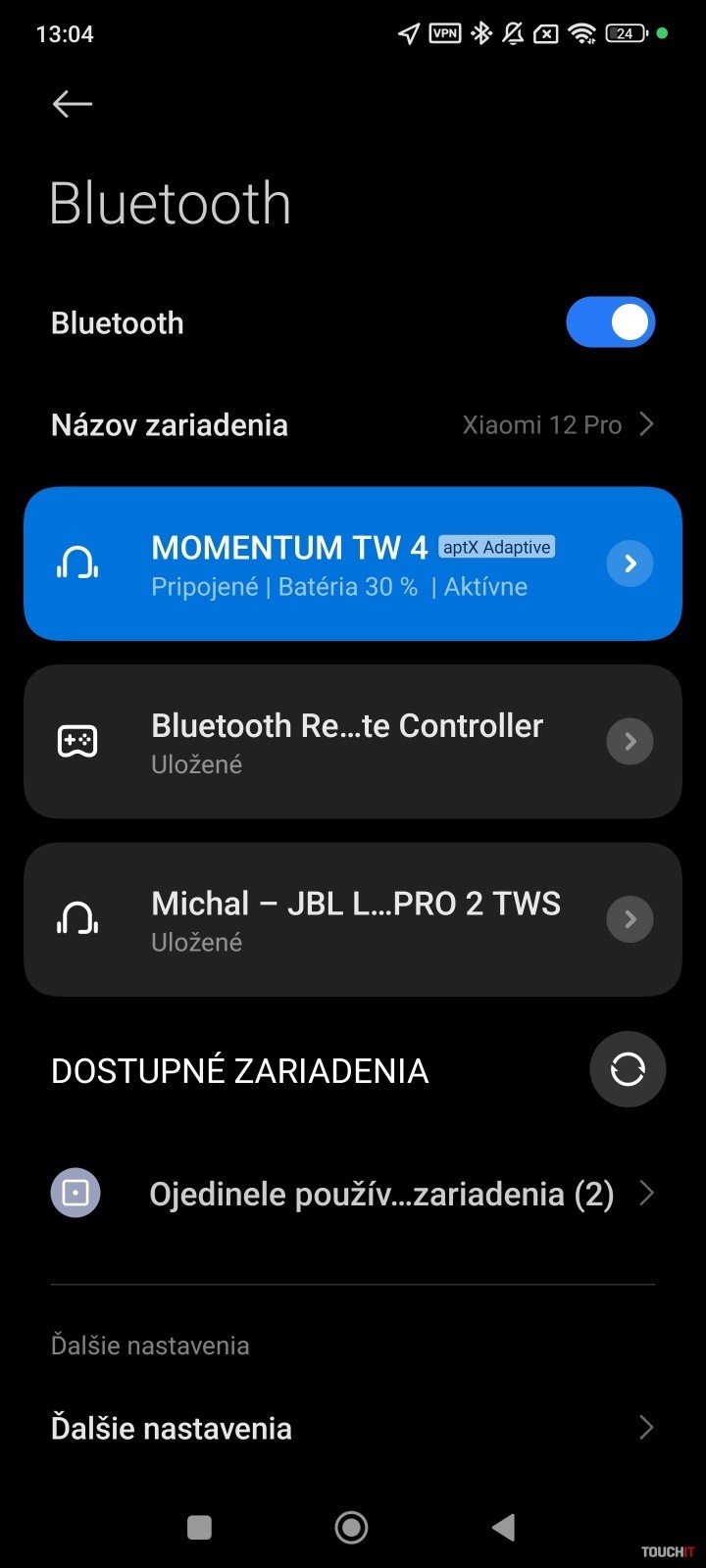 Základom je Bluetooth 5.4 a možnosť prepojiť slúchadlá s 2 zariadeniami súčasne. Všetky zariadenia, ku ktorým boli slúchadlá pripojené, sa budú zobrazovať následne aj v aplikácii. Párovanie sa dá spustiť aj počas počúvania hudby. Stačí sa dotknúť oboch slúchadiel na dotykových plochách a podržať prsty, pokým sa ozve hlásenie o párovaní. Detail, ale určite poteší.