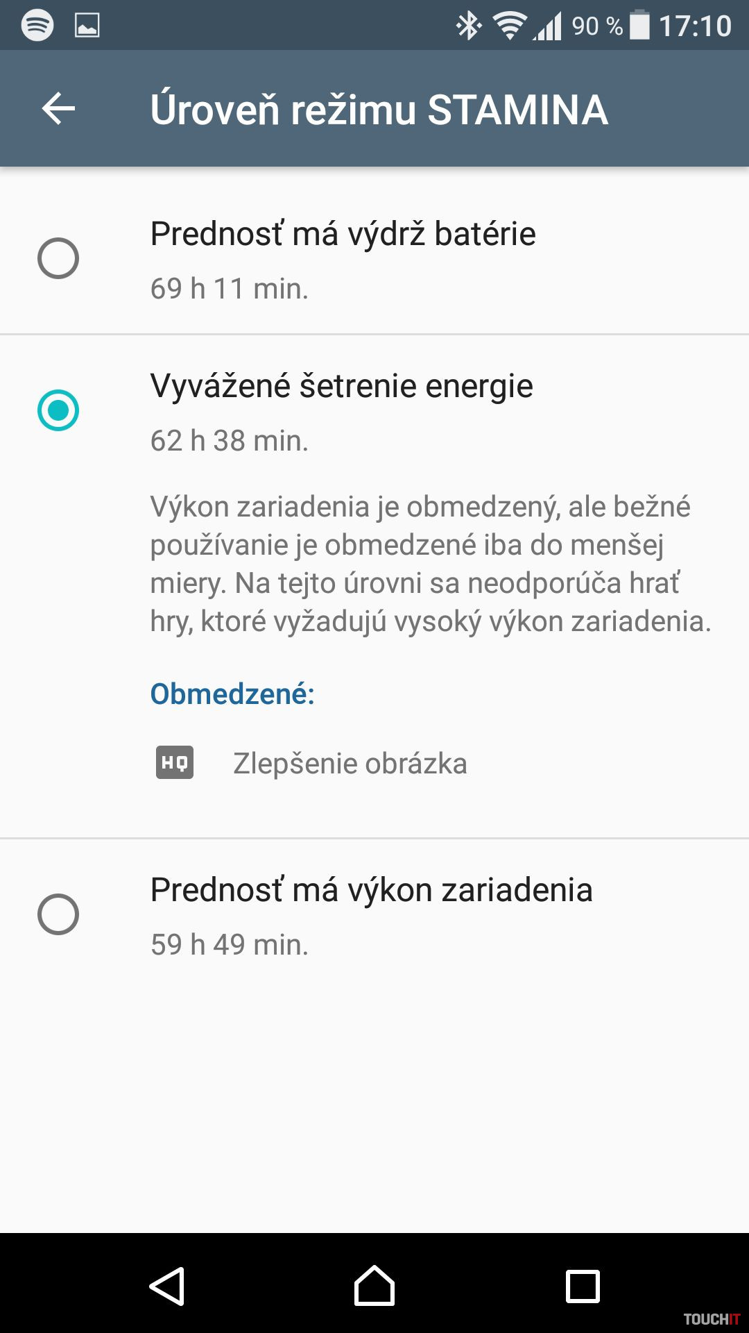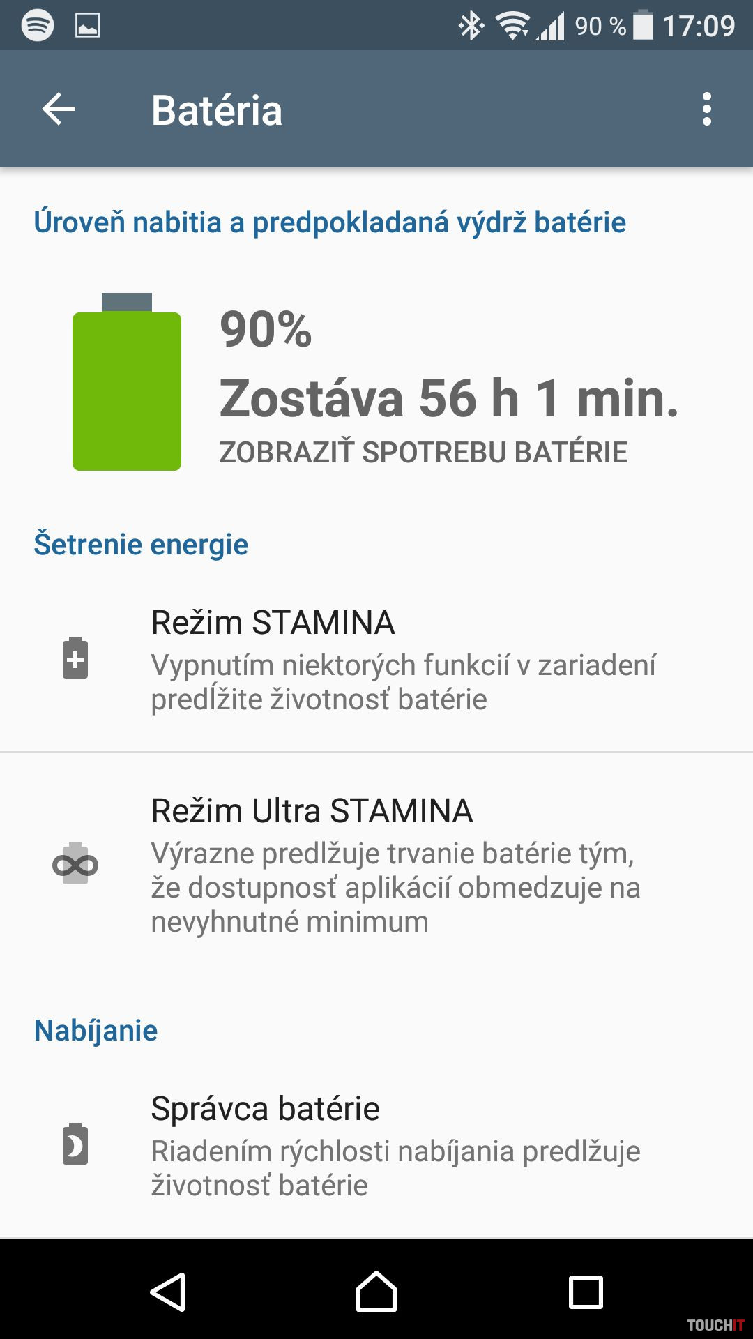 Batéria má kapacitu 2900 mAh a telefón vám v závislosti od používania môže na jedno nabitie vydržať aj dva dni. Xperie v tomto smere vždy excelovali, novinka nie je výnimkou. My sme na výdrž batérie pomerne nároční, nakoľko telefón využívame naplno. Xperia XZ v takejto prevádzke vydržala na jedno nabitie dlhšie ako deň. Do ponuky sa vrátil aj režim STAMINA (a aj režim Ultra STAMINA), ktorý v prípade niektorých starších zariadení od Sony chvíľu absentoval po vydaní aktualizácie na Android 6.0 Marshmallow. Tento operačný systém poháňa aj XZ-ko, aktualizácia na Nougat by však mala prísť už tento mesiac. Batéria ponúka aj technológiu Qnovo Adaptive Charging, ktorá optimalizuje nabíjanie telefónu. Túto technológiu môžete zapnúť alebo vypnúť, v nastaveniach ju nájdete pod názvom Battery Care / Správca batérie a jej prínos oceníte v prípade, že pravidelne nabíjate telefón napr. cez noc. Xperia sa na vaše zvyky naučí a nabíjanie tomu prispôsobí. Po nabití batérie na 90% spomalí nabíjanie tak, aby sa hranica 100% nabitia batérie dosiahla tesne predtým, ako telefón odpojíte z nabíjačky. Predpokladom je, že telefón budete nabíjať v rovnakom čase aspoň týždeň. Prínos oboch technológií je v tom, že znižujú opotrebovanie batérie a predlžujú jej životnosť. V dlhodobom meradle to veľmi oceníte. Xperia podporuje aj rýchle nabíjanie.