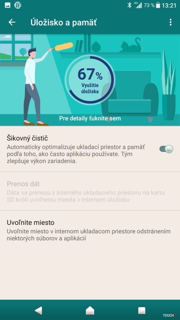 Pripomienky máme k množstvu predinštalovaných aplikácií. Je škoda, že sa nás telefón pri prvom spustení nepýta, čo si chceme nainštalovať – tak to robí Samsung Galaxy S8 a je to praktické. Kritizujeme aj nevyužitý potenciál tzv. Xperia akcií. Sony pripravilo 3 scenáre (noc, pracovný čas, v zahraničí) a pár akcií, ktoré sa môžu vykonať. Chýba nám možnosť tieto scenáre a akcie editovať alebo pridávať vlastné nastavenia. Chválime však, že počas nášho viac ako mesačného testovania sme dostali dvojicu aktualizácií softvéru. Dnes, 19. 7. 2017, si telefón stiahol OTA aktualizáciu so zabezpečením systému Android k 1. 7. 2017. Táto aktualizácia by mala opraviť aj drobné nedostatky, ktoré sa zriedkavo objavili, ako je napr. znak notifikácie na ikone aplikácie, ktorý nezmizne po spustení aplikácie a prečítaní upozornenia a ostane svietiť aj po vypnutí aplikácie, hoci by nemal. Riešením je aplikáciu párkrát spustiť a vždy sa vrátiť do domovskej obrazovky. Tento problém sme si párkrát všimli v prípade aplikácie Facebook, raz či dvakrát aj v prípade systémovej aplikácie Správy. Druhým nedostatkom, na ktorý sme natrafili, bolo občasné nekorektné správanie Wi-Fi pripojenia. Problém je možné vyriešiť vypnutím a opätovným zapnutím funkcie Wi-Fi.