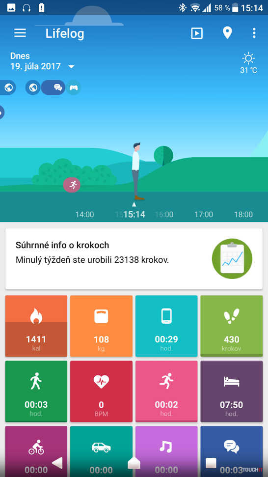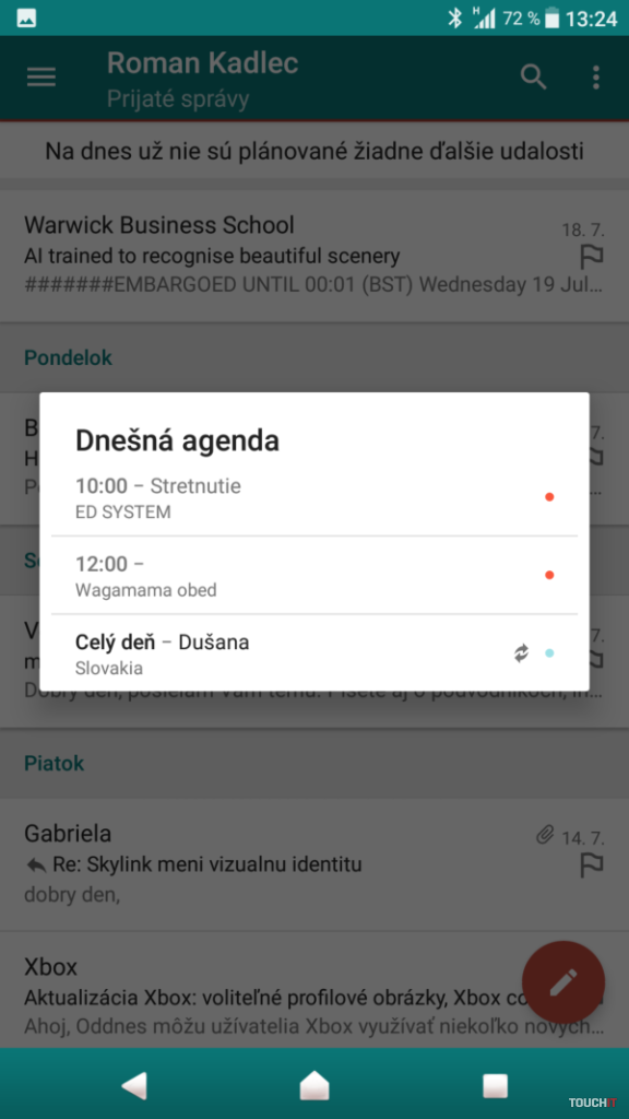 Rozhranie systému Android s nadstavbou od Xperie a užitočné systémové aplikácie Lifelog a E-mail