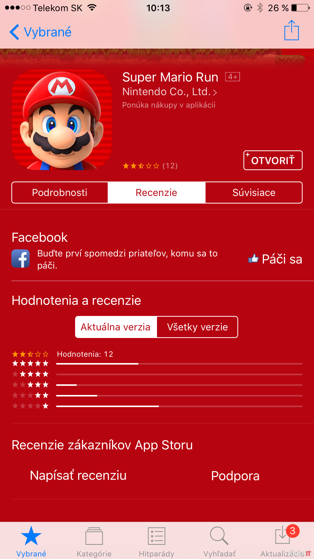 Apple dal Mariovi všetky horné banery v obchode App Store. Hru nemôžete prehliadnuť