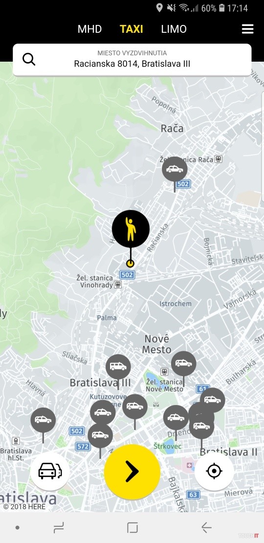 Páčil sa nám jej rýchly štart. Následne sme sa pokúsili objednať taxi. Vaša poloha sa objaví panáčikom na mape. Je dosť presná, ale nie bezchybná. Taxikári roky hovoria o tom, že počas blíženia sa k zákazníkovi ho majú na opačnej strane cesty a až následne zistia, že stojí na druhej strane. Týchto prípadov je minimum. Netreba sa obávať, že by vašu polohu ukazovalo nesprávne a taxikár by prišil z druhej strany nákupného centra. Po ťuknutí na žlté tlačidlo šípky sa spustí proces vytvorenia objednávky. Vtedy sa zobrazí aj najbližší taxík od vašej polohy. Následne zadáte cieľovú adresu a vypočíta sa odhad ceny. Spravidla sa nám stávalo, že sme platili o 50 centov menej, ako bol odhad ceny. V jednom prípade to bolo o 80 centov viac. Pri objednávaní môžete zadať aj poznámku, napríklad, že máte veľké kufre, že sa prepravujete so psom alebo, že chcete medzi zastávku na inej adrese. Čokoľvek, čo si myslíte, že pomôže vám aj taxikárovi.