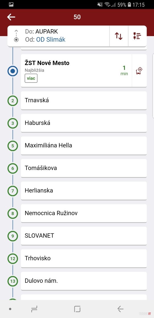 Pridanie sledovania polohy vozidiel MHD je veľmi dobrá vec. Počítajte s minútovým oneskorením. Červená značí aktuálnu polohu, bledočervená potom len poslednú polohu bez potvrdenia presnej polohy. Na tomto chce Hopin do budúcna zapracovať viac a mať presnejšie dáta.