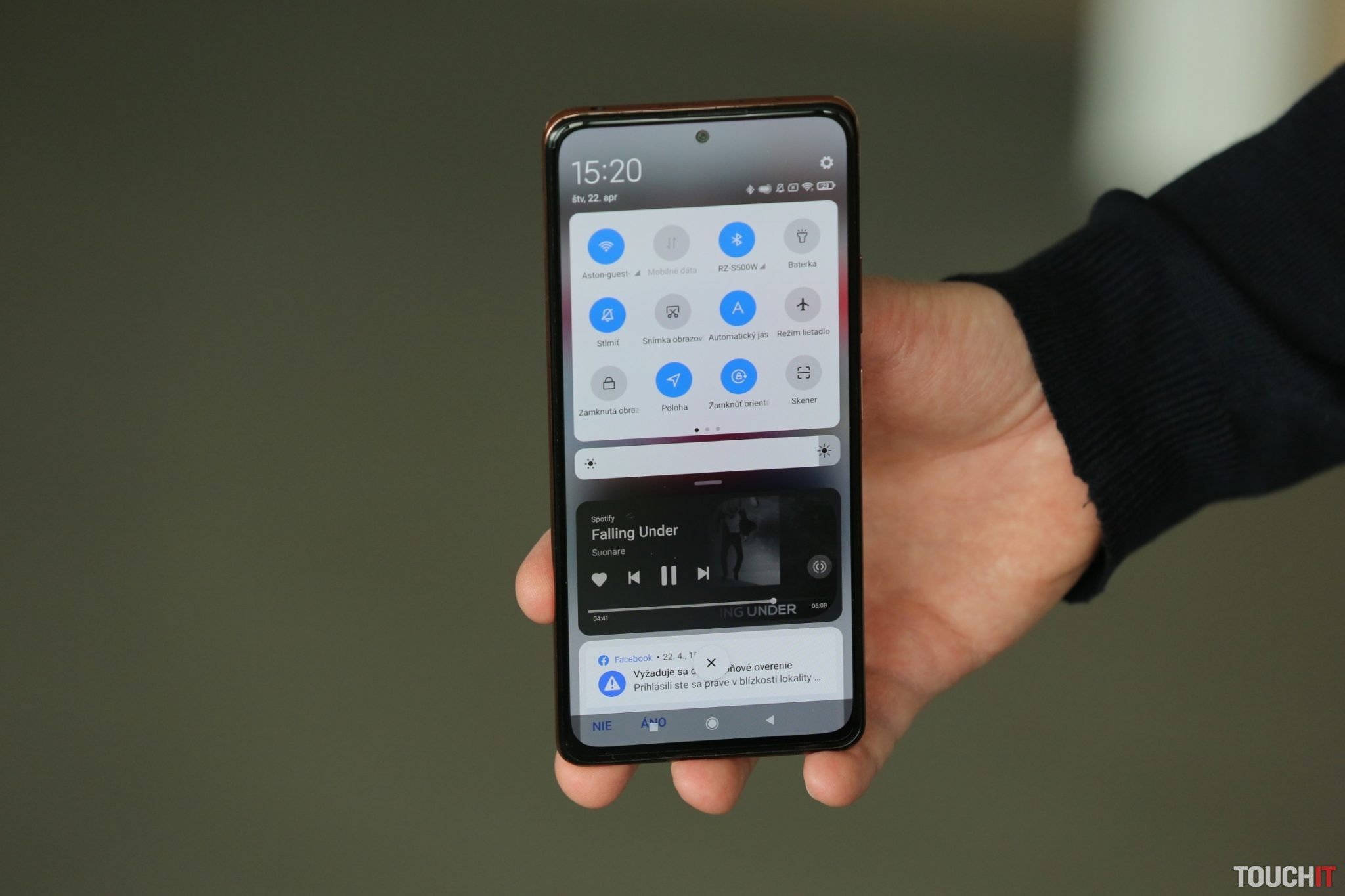 Je skoro tak veľký ako Galaxy Note 10+, no tým že má iný tvar, drží sa lepšie v ruke. Zaujímavosťou je snímač odtlačkov na boku. Je klasicky v tlačidle na zapnutie, no na rozdiel od bežných zvyklostí nie je tlačidlo zapustené ale je vypuklé smerom von. Zvláštny pocit, no všetko funguje spoľahlivo. Telefón má rovnaké rozhranie ako Xiaomi a v MIUI si môžete nastaviť tiež to, aby sa displej odomkol nielen po dotyku na snímač ale až po stlačení tlačidla. To inak vrelo odporúčam, ak nechcete mať neustále náhodne odomknutý displej, napríklad vo vrecku. Odomykanie tvárou tradične nie, odomkne vás aj s rúškom a táto paródia na akože fungujúce odomykanie tvárou by už v telefónoch tohto výrobcu mohla skončiť. Nabíjanie s 33 W nabíjačkou je pohodlné a je to tak akurát. Na 5020 mAh batériu netreba výkonnejšie nabíjanie, najmä s prihliadaním na zachovanie najlepšej ceny. Výrobca ponechal aj audio konektor, ten je na hornej hrane a takisto tu nechal aj IR vysielač, čiže máte možnosť používať mobil ako diaľkové ovládanie. Fotoaparáty sú vystúpené a telefón položený na stole sa bude pri dotyku na displej kývať. Tým, že sú fotoaparáty hrubšie, ľahšie sa zoberie zo stola. Všetko detaily a nech je ako chce, telefón sa dá celkovo dobre používať. Displej zostal na rozdiel od Mi 11 plochý a zakrivené je len ochranné sklo. Takto to mám rád, zakrivené displeje sú taká móda, ktorá sa, ako vidno, neprejavila v celom spektre smartfónov.