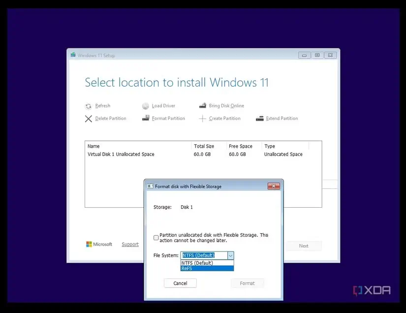V Insider zostave Windows 11 s číslom 27823 je možnosť naformátovať disk ako ReFS už počas inštalácie Windows. Je to voliteľná funkcia a nazýva sa Flexible Storage. Serverové Insider zostavy už túto funkciu majú plne funkčnú. Vo verziách pre bežné počítače je zatiaľ v režime testovania.