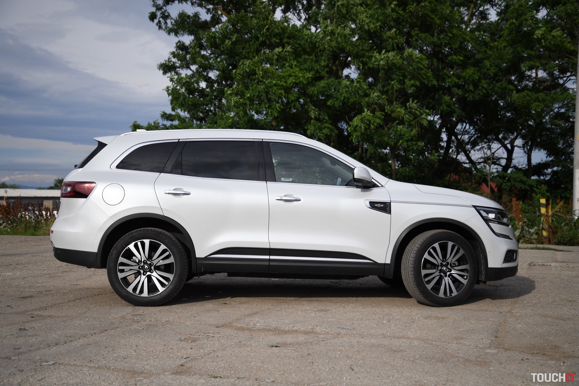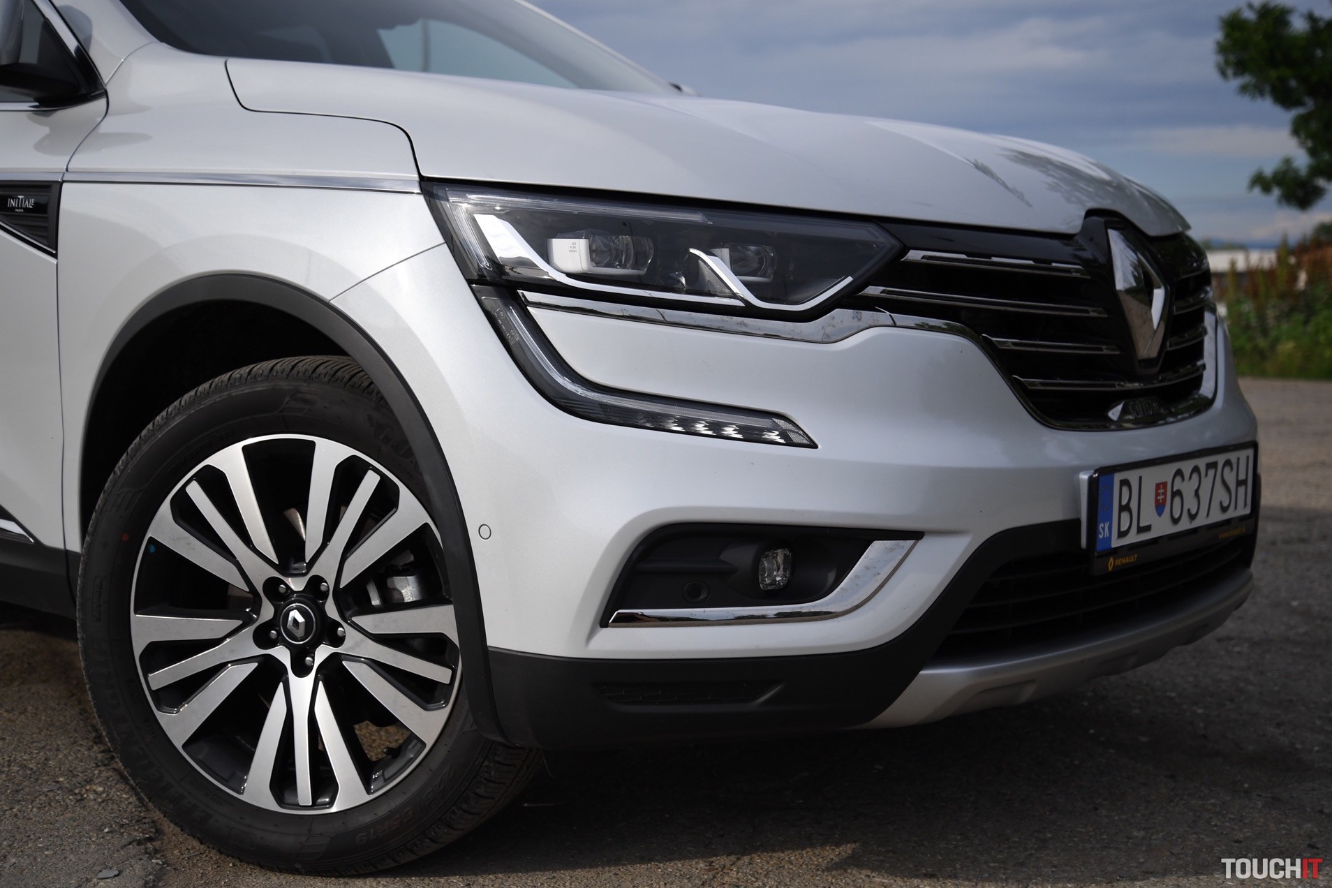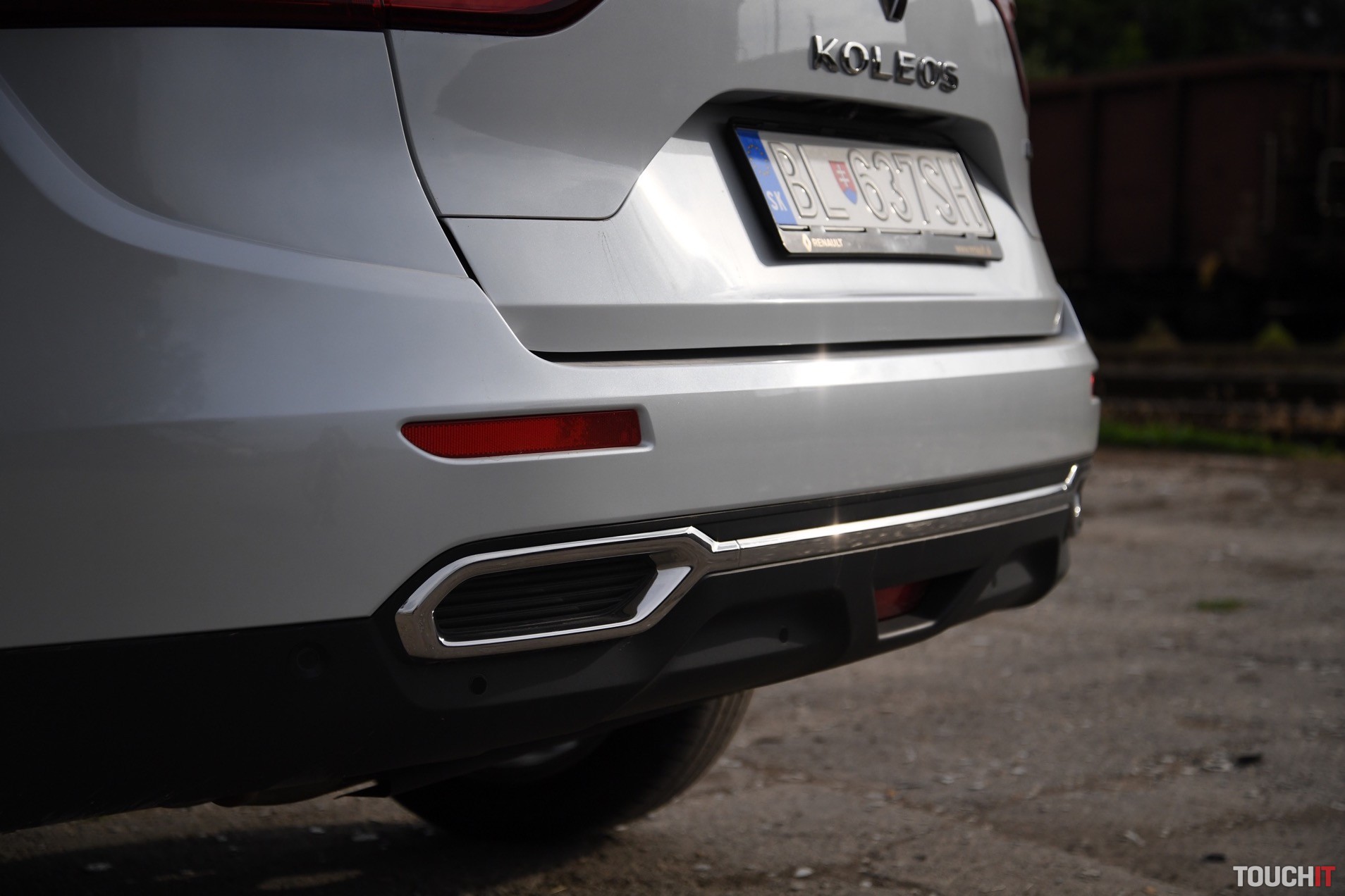 Dizajn sa podaril. Koleos je robustné a svojím spôsobom aj reprezentatívne SUV. Okamžite zaujme grafika predných a zadných svetlometov, ktorá je síce známa, ale stále pôsobivá. Prednej časti dominuje masívna maska chladiča s prvkami chrómu, ktorá je opticky spojená so svetlometmi. Samozrejmosťou je veľký emblém Renault, v ktorom je zakomponovaná predná kamera. Spodnú časť celého auta, vrátane blatníkov, lemuje nelakovaný plast, ktorý má ochranný charakter. Tento prvok v teréne určite oceníte. Predná časť je zvýraznená podnárazníkom v striebornej farbe, ktorý opticky rozširuje predok. Z profilu nemá Koleos výrazné prelisy, ktoré by som pri pohľade spredu a zozadu očakával. Sú iba jemné a nijako nebijú do očí. Azda najvýraznejším prvkom je chrómová lišta, ktorá prechádza od svetiel až po predné dvere, kde je zakončená „hákom“, v ktorom je logo s označením výbavy – Initiale. Toto logo vás bude sprevádzať všade, naozaj všade. Z výrazných prvkov stojí za povšimnutie kaskádovitý bočný rez kapoty a prelisy prednej kapoty, od ktorých sa pekne odráža svetlo. V bielej perleti vyzerá Koleos výborne, ale umývanie si zadajte do kalendára s častejším opakovaním.