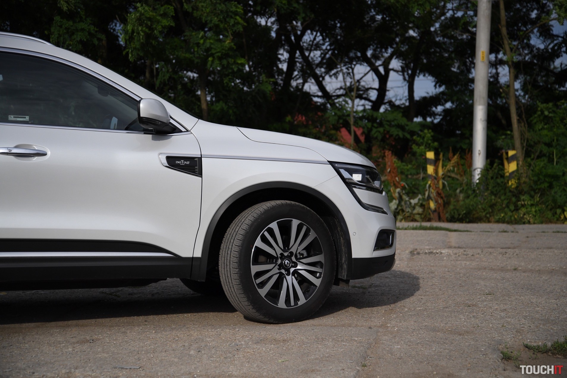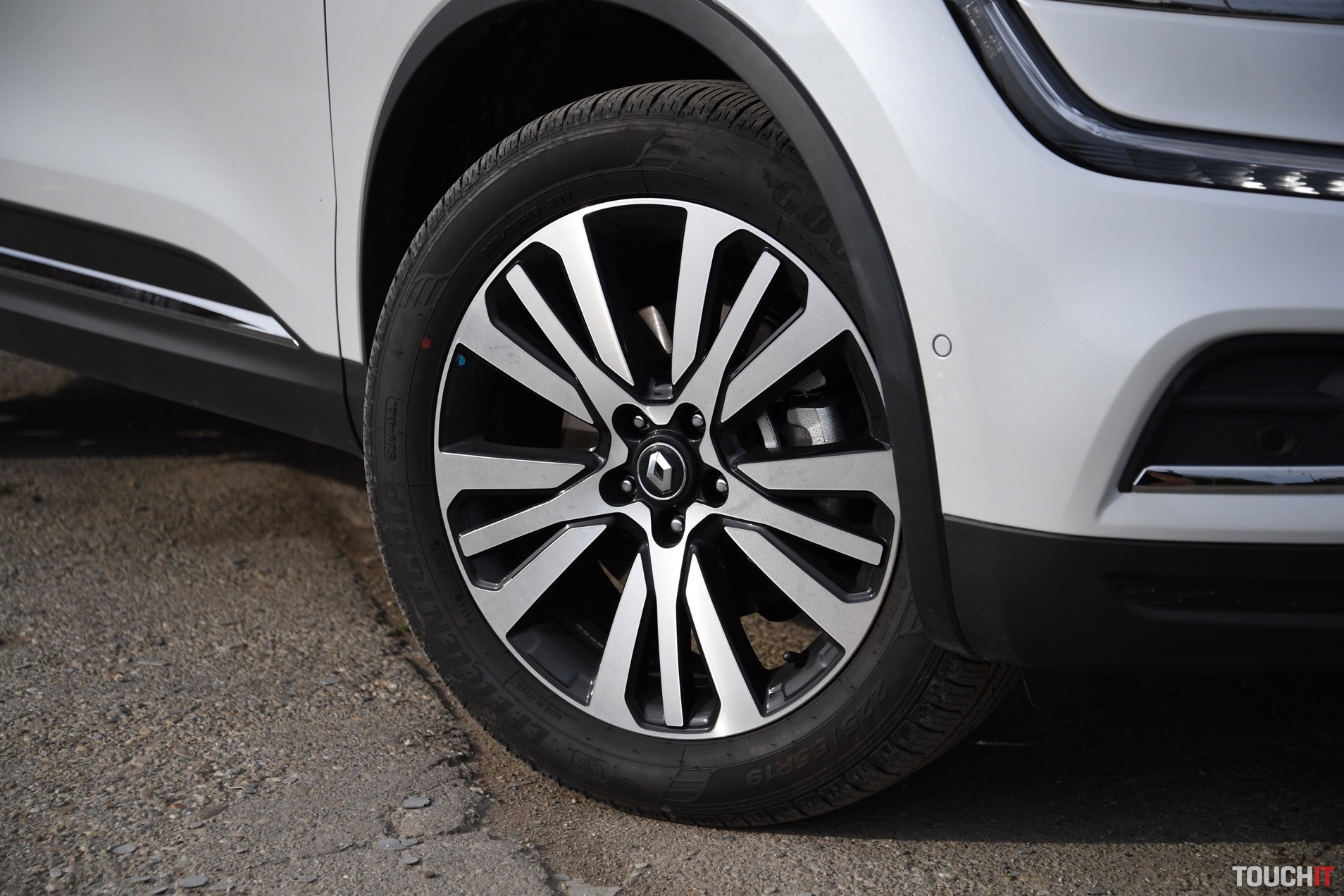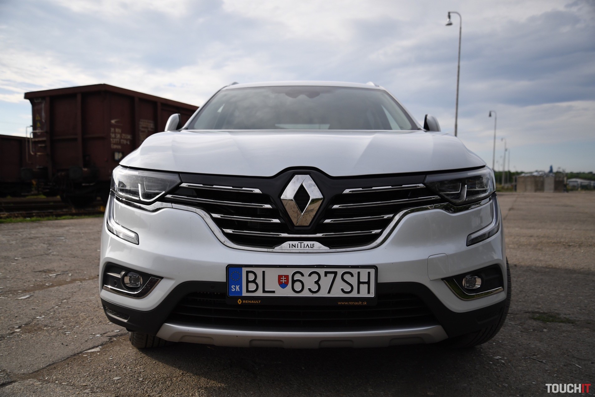 Dizajn sa podaril. Koleos je robustné a svojím spôsobom aj reprezentatívne SUV. Okamžite zaujme grafika predných a zadných svetlometov, ktorá je síce známa, ale stále pôsobivá. Prednej časti dominuje masívna maska chladiča s prvkami chrómu, ktorá je opticky spojená so svetlometmi. Samozrejmosťou je veľký emblém Renault, v ktorom je zakomponovaná predná kamera. Spodnú časť celého auta, vrátane blatníkov, lemuje nelakovaný plast, ktorý má ochranný charakter. Tento prvok v teréne určite oceníte. Predná časť je zvýraznená podnárazníkom v striebornej farbe, ktorý opticky rozširuje predok. Z profilu nemá Koleos výrazné prelisy, ktoré by som pri pohľade spredu a zozadu očakával. Sú iba jemné a nijako nebijú do očí. Azda najvýraznejším prvkom je chrómová lišta, ktorá prechádza od svetiel až po predné dvere, kde je zakončená „hákom“, v ktorom je logo s označením výbavy – Initiale. Toto logo vás bude sprevádzať všade, naozaj všade. Z výrazných prvkov stojí za povšimnutie kaskádovitý bočný rez kapoty a prelisy prednej kapoty, od ktorých sa pekne odráža svetlo. V bielej perleti vyzerá Koleos výborne, ale umývanie si zadajte do kalendára s častejším opakovaním.