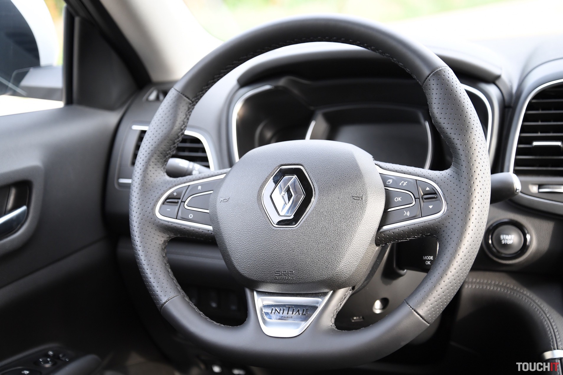 je najvyššia, ale stále existuje viacero prvkov, za ktoré si budete musieť priplatiť. Interiér je spracovaný dobre, pôsobí luxusne, ale má pár nedostatkov. Pochvalu si zaslúži komfortné sedenie a kvalitná koža, ktorá pokrýva sedadlá a menšie prvky interiéru. Koža je na sedadlách perforovaná a vyhotovená v dvoch farbách, ktoré sú spojené tieňovaním. Vyzerá to luxusne. Perforovanie je prítomné vďaka funkcii odvetrávania sedadiel. Samozrejmosťou je vyhrievanie predných, ale aj zadných bočných sedadiel. Ovládanie ohrevu zadných sedadiel je špecificky zakomponované do lakťovej opierky. Aby to bolo kompletné, tak vyhrievaný je aj volant a čelné sklo (Pack Winter Initiale Paris). Palubnej doske dominuje hlavne stred, v ktorom je osadený veľký dotykový LCD displej s informačno-multimediálnym systémom R-Link 2. Displej je uložený vertikálne a nastavený neutrálne. To my trošku prekážalo, prijal by som väčšiu orientáciu na vodiča.