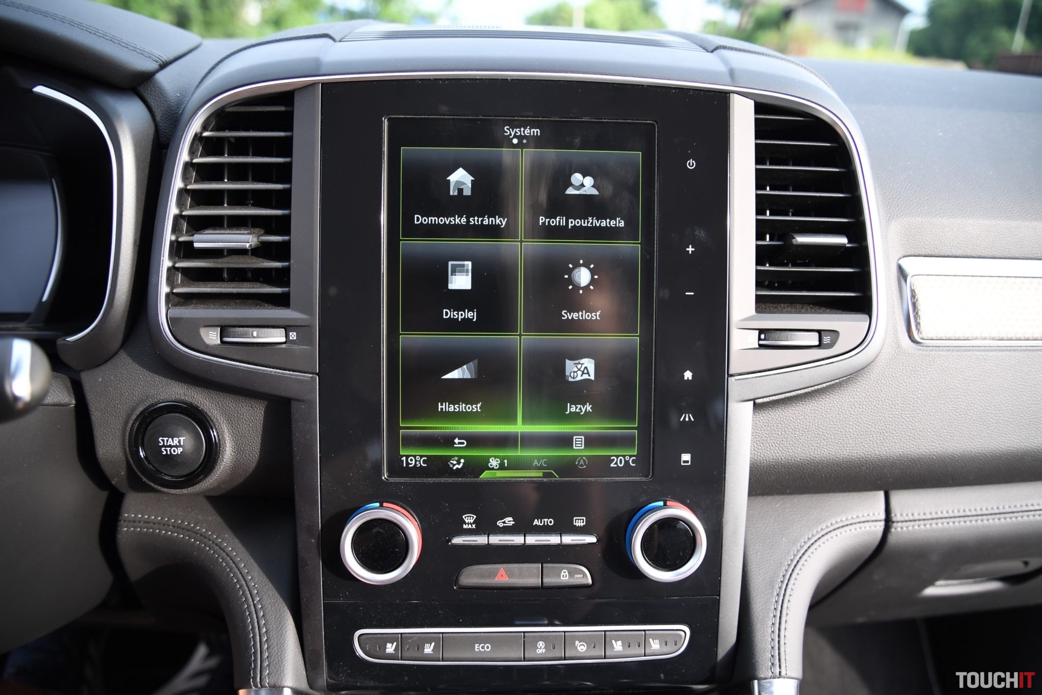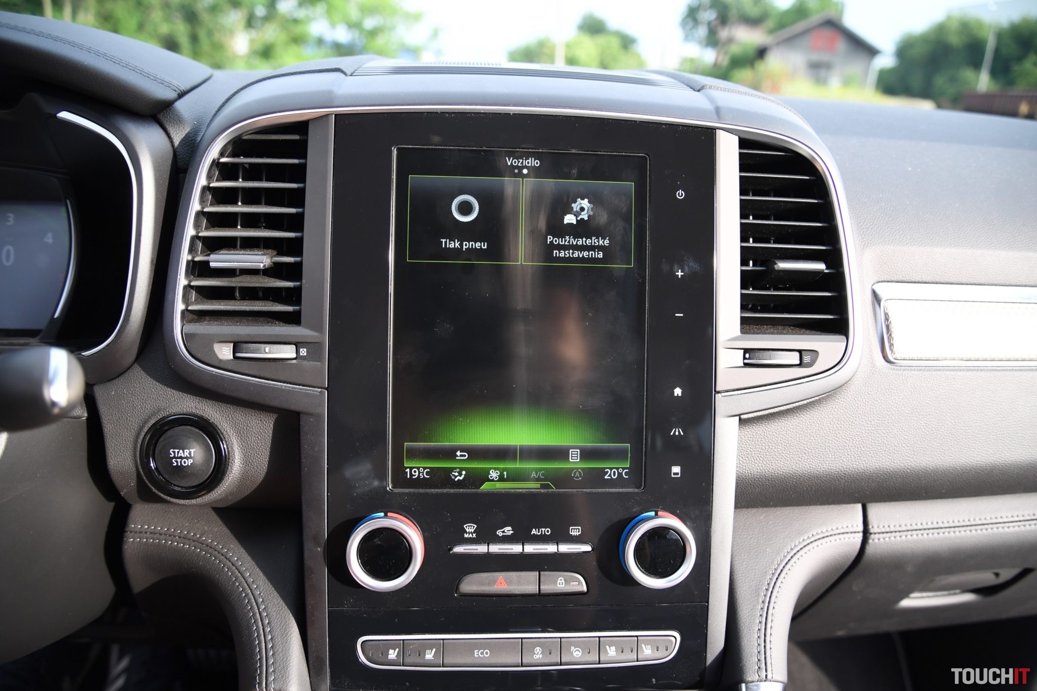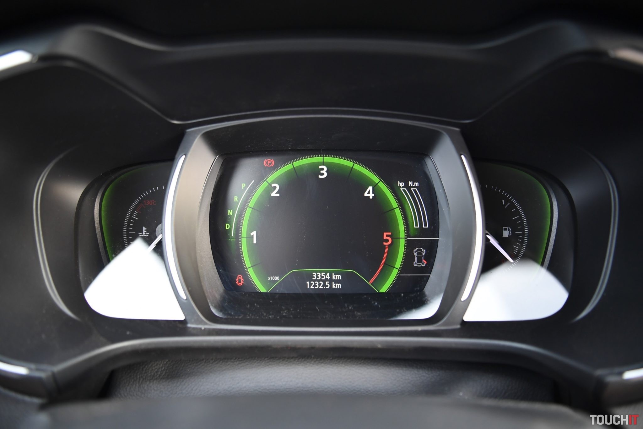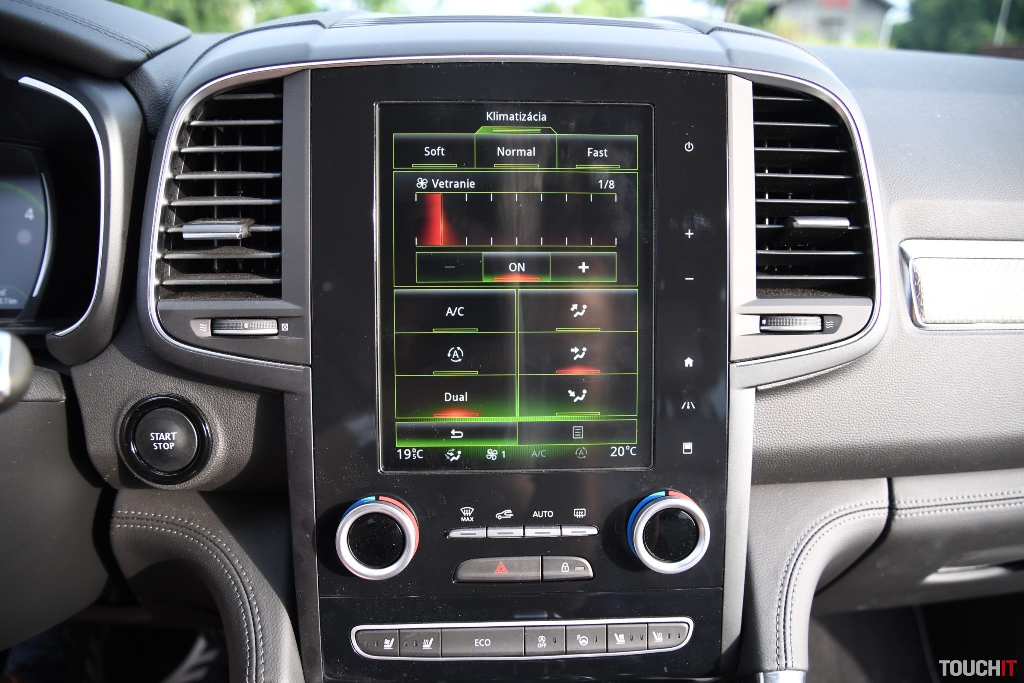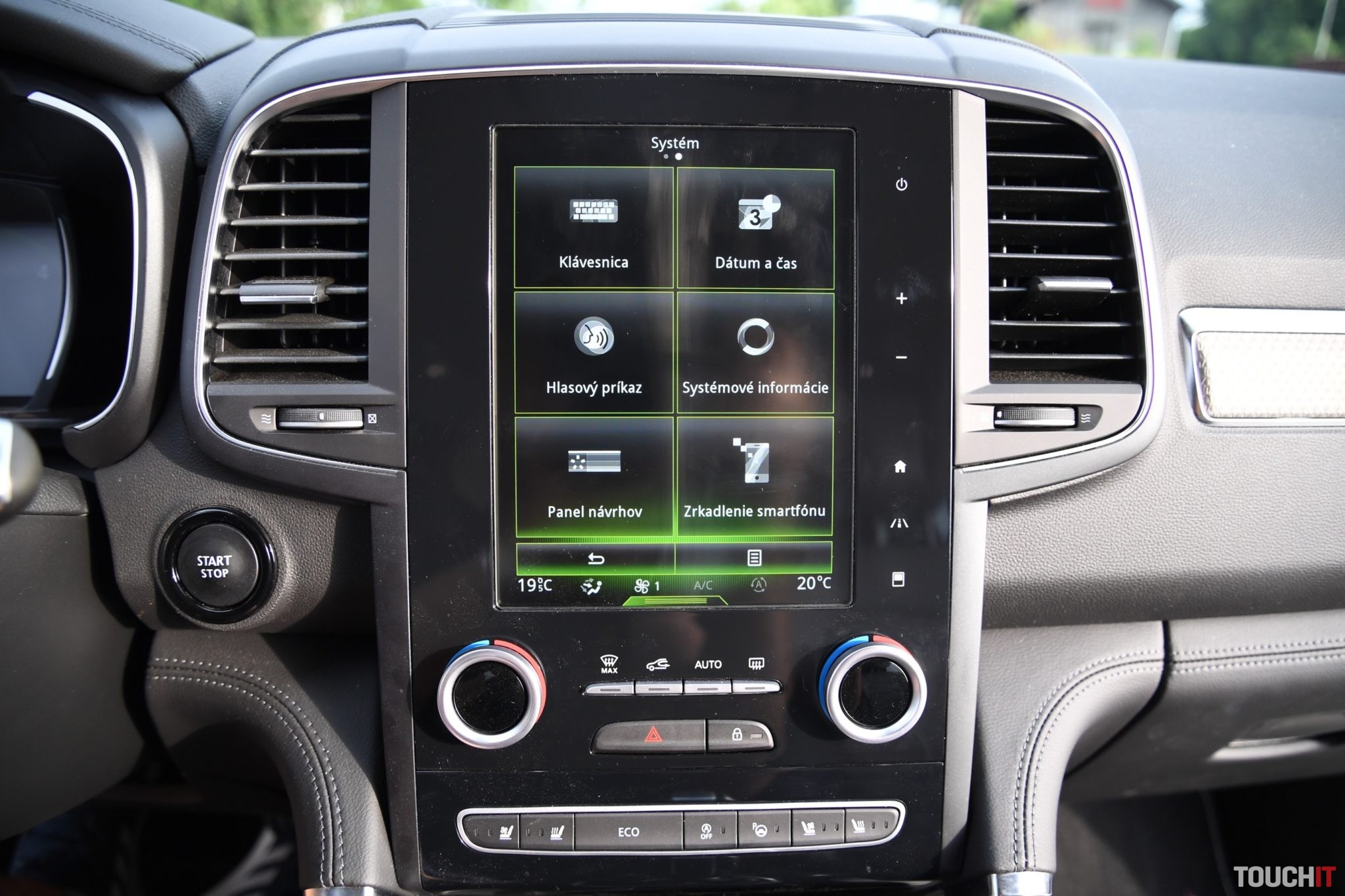 Základom celého systému je vertikálne uložený, 8,7“, dotykový LCD displej s dotykovými tlačidlami po jeho pravej strane. Umiestnený je v strede palubnej dosky a nijako nebráni výhľadu z vozidla. Nevkusne pôsobia iba veľké a nijak nevyužité rámiky okolo displeja. Pred šoférom je digitálny prístrojový panel (7“), na ktorom sa zobrazujú všetky elementárne informácie o stave a prevádzke vozidla. Prístrojový panel vie meniť aj grafiku – po aktivácii režimu ECO alebo po aktivácii režimu SPORT, resp. aktiváciou manuálneho radenia. Po bokoch displeja sú analógové ukazovatele stavu paliva a teploty chladiacej kvapaliny. Veľký displej v strede palubnej dosky disponuje inovovaným systémom R-Link 2, ktorý pracuje celkom dobre. Prijal by som však rýchlejšiu odozvu systému.
