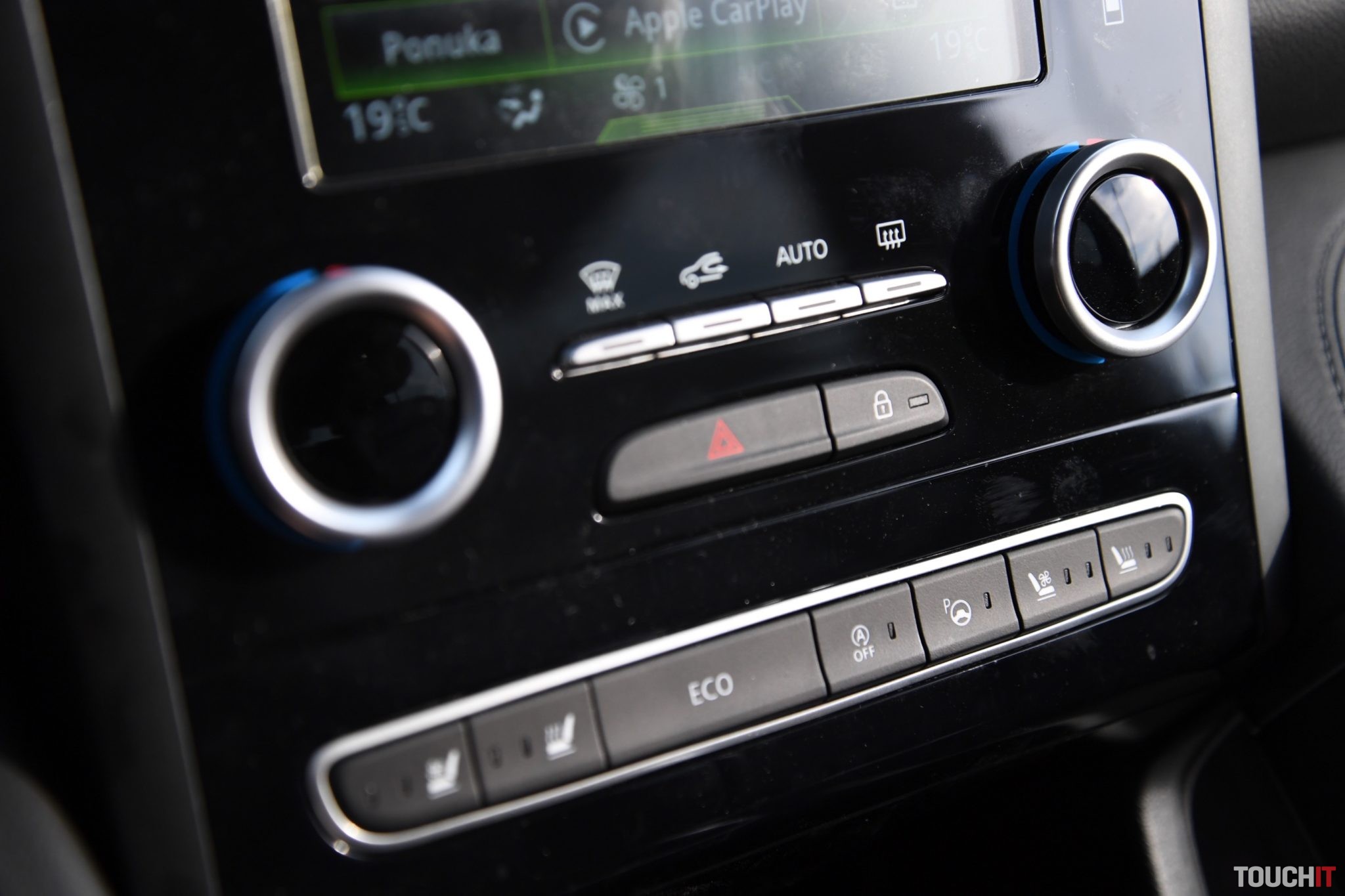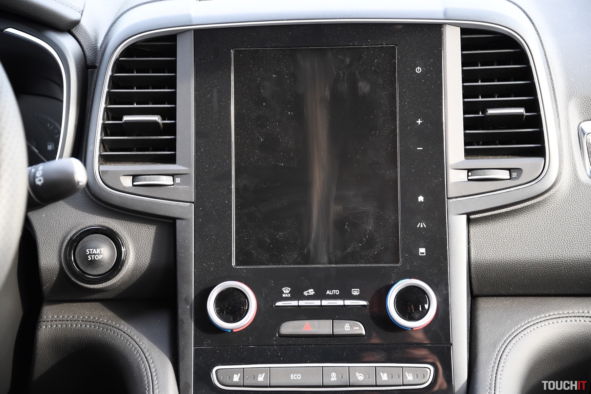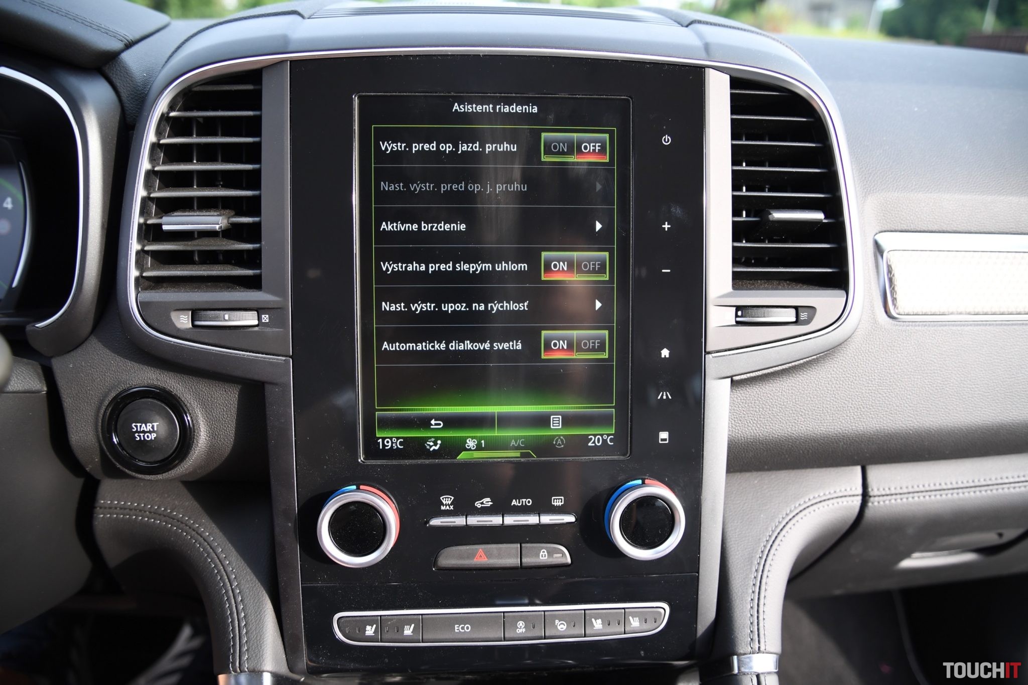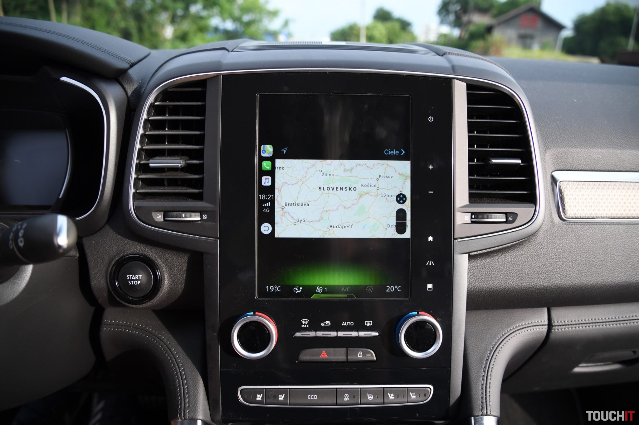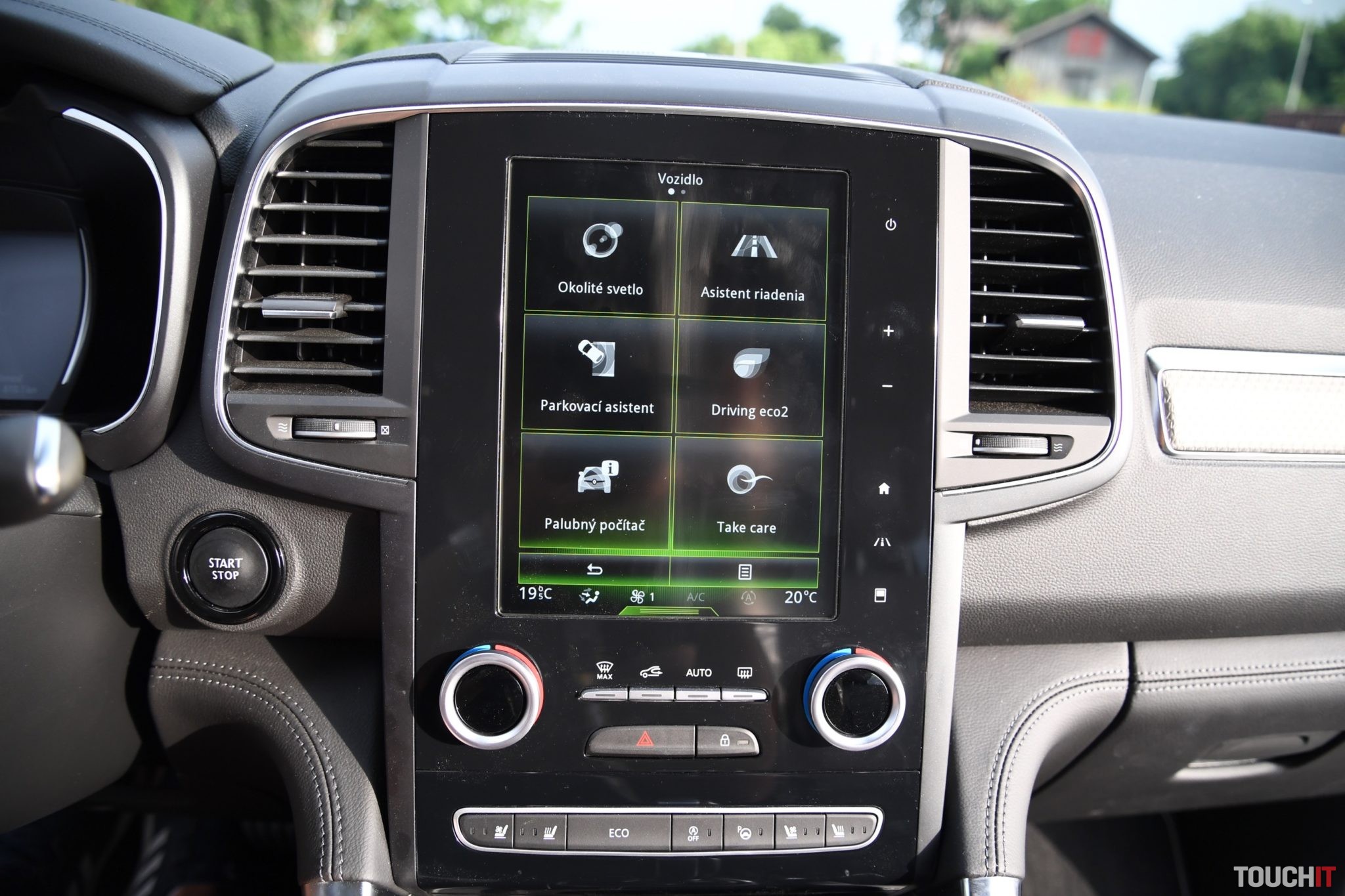 Základom celého systému je vertikálne uložený, 8,7“, dotykový LCD displej s dotykovými tlačidlami po jeho pravej strane. Umiestnený je v strede palubnej dosky a nijako nebráni výhľadu z vozidla. Nevkusne pôsobia iba veľké a nijak nevyužité rámiky okolo displeja. Pred šoférom je digitálny prístrojový panel (7“), na ktorom sa zobrazujú všetky elementárne informácie o stave a prevádzke vozidla. Prístrojový panel vie meniť aj grafiku – po aktivácii režimu ECO alebo po aktivácii režimu SPORT, resp. aktiváciou manuálneho radenia. Po bokoch displeja sú analógové ukazovatele stavu paliva a teploty chladiacej kvapaliny. Veľký displej v strede palubnej dosky disponuje inovovaným systémom R-Link 2, ktorý pracuje celkom dobre. Prijal by som však rýchlejšiu odozvu systému.