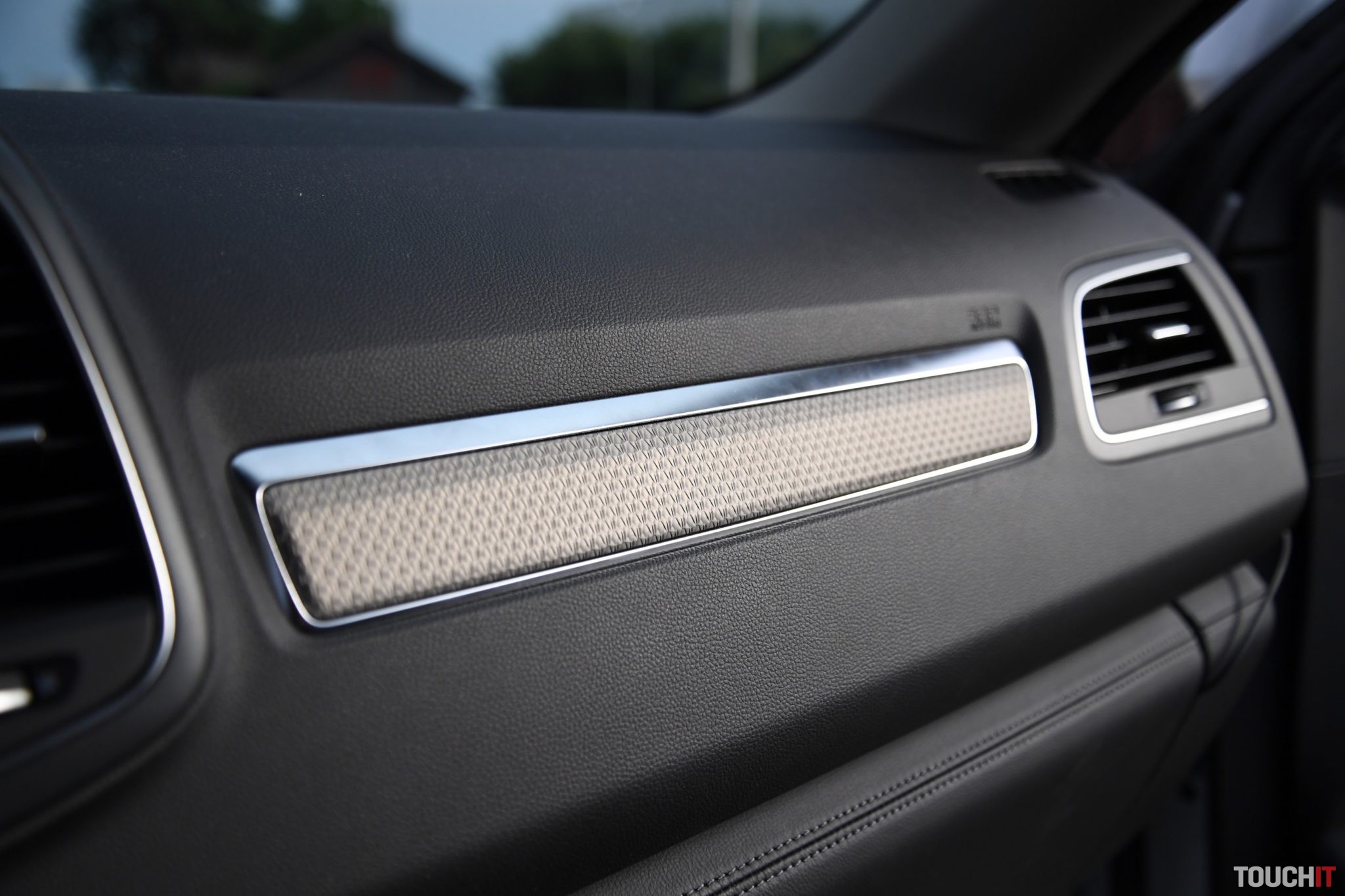 Počas testu som ocenil viacero odkladacích priestorov, ale v takto veľkom a rodinnom aute mi chýbala veľká klimatizovaná priehradka, ako to má napr. Peugeot 5008 (Recenziu nájdete > TU). Tento prvok je v lete neoceniteľný! Palubovka a výplne dverí sú vyhotovené z mäkčeného plastu a občas narazíte aj na prvky čalúnené kožou. Pekným doplnkom sú okrasné lišty palubovky so vzorom „initiale“. Stredový tunel pokrýva veľká lišta v klavírnym lakom, ktorý je pekný, ale vidieť na ňom všetky nečistoty. Najhorší prvok interiéru – madlo, ktoré prepája stredový tunel s palubnou doskou. Pochopím jeho prítomnosť na strane spolujazdca, ale na strane vodiča nie. Vodič sa drží volantu, nie madla. Celý týždeň sa mi oňho tlačilo koleno a pokiaľ som nezapol tempomat, tak to bolo nepríjemné. Posed za volantom je inak príjemný a ani po dlhšej ceste nevysadnete vyslovene unavení. Sedadlo vodiča, ako aj spolujazdca, je nastaviteľné elektricky a s dobrým rozsahom. Svoju polohu som si našiel pomerne rýchlo. O komfort sa starajú aj hlavové opierky typu relax. Tie však ocení skôr spolujazdec.