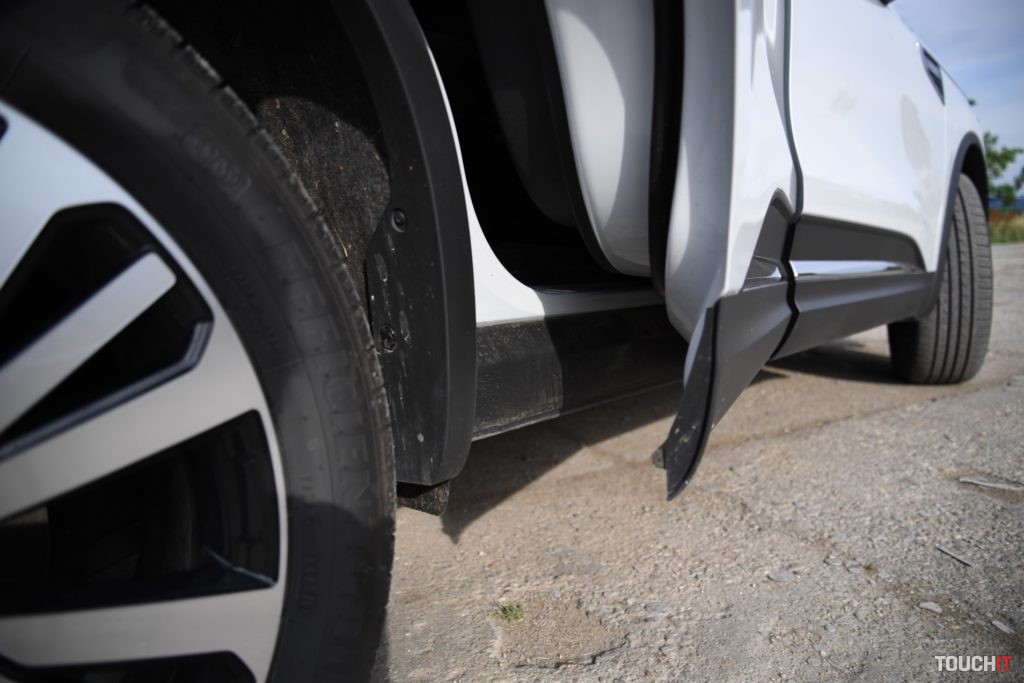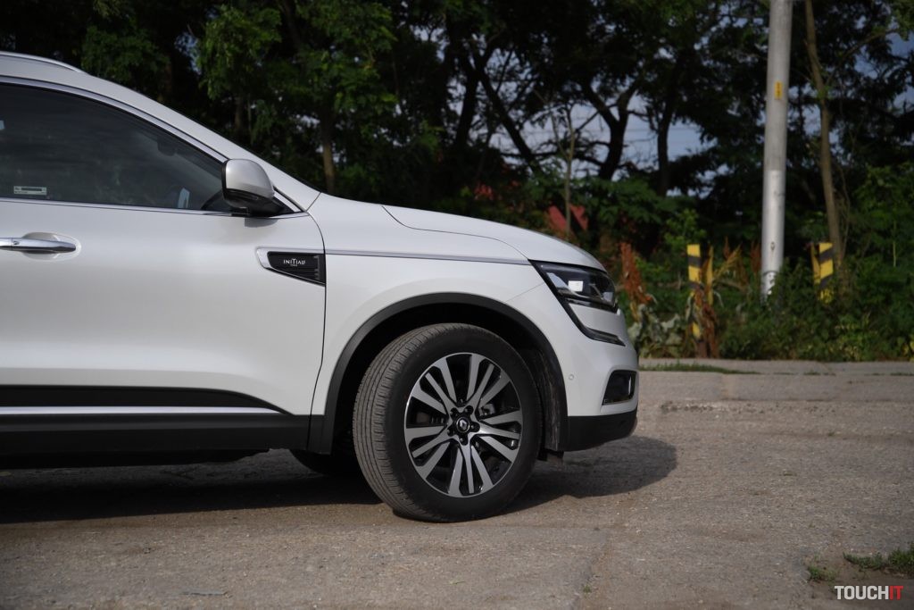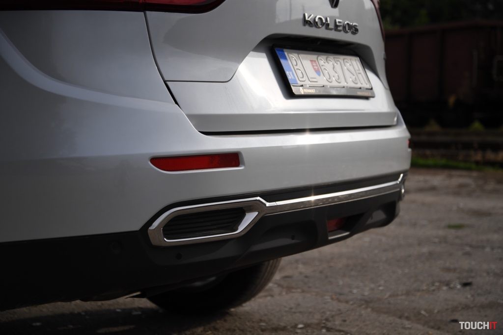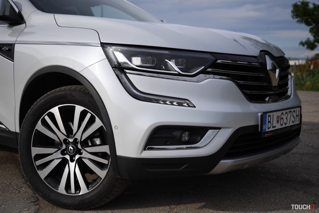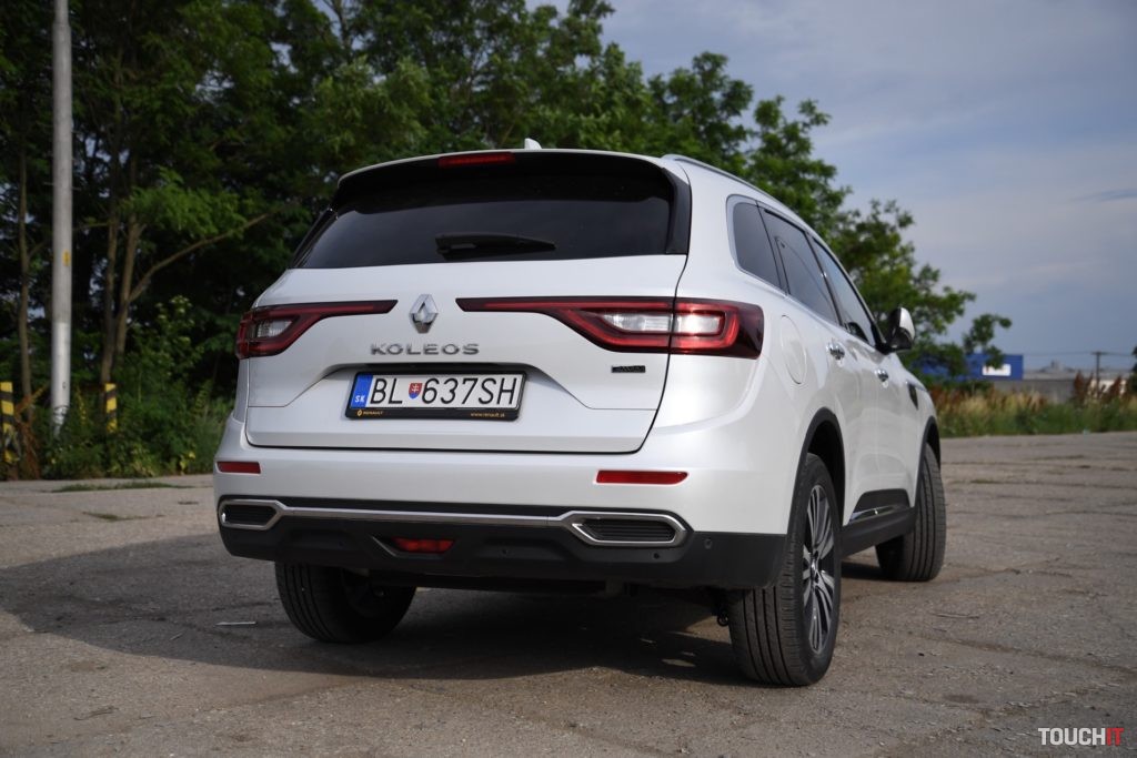 Dizajn sa podaril. Koleos je robustné a svojím spôsobom aj reprezentatívne SUV. Okamžite zaujme grafika predných a zadných svetlometov, ktorá je síce známa, ale stále pôsobivá. Prednej časti dominuje masívna maska chladiča s prvkami chrómu, ktorá je opticky spojená so svetlometmi. Samozrejmosťou je veľký emblém Renault, v ktorom je zakomponovaná predná kamera. Spodnú časť celého auta, vrátane blatníkov, lemuje nelakovaný plast, ktorý má ochranný charakter. Tento prvok v teréne určite oceníte. Predná časť je zvýraznená podnárazníkom v striebornej farbe, ktorý opticky rozširuje predok. Z profilu nemá Koleos výrazné prelisy, ktoré by som pri pohľade spredu a zozadu očakával. Sú iba jemné a nijako nebijú do očí. Azda najvýraznejším prvkom je chrómová lišta, ktorá prechádza od svetiel až po predné dvere, kde je zakončená „hákom“, v ktorom je logo s označením výbavy – Initiale. Toto logo vás bude sprevádzať všade, naozaj všade. Z výrazných prvkov stojí za povšimnutie kaskádovitý bočný rez kapoty a prelisy prednej kapoty, od ktorých sa pekne odráža svetlo. V bielej perleti vyzerá Koleos výborne, ale umývanie si zadajte do kalendára s častejším opakovaním.