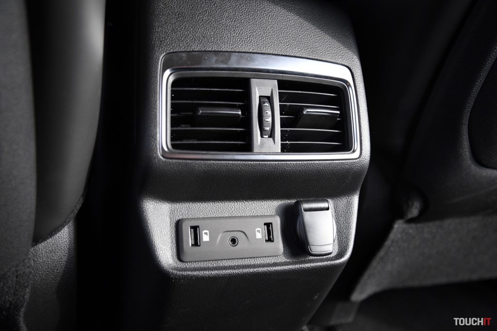 Sedenie vzadu je na tom podobne, vyniká hlavne komfortom. Prekvapením bol životný priestor, ktorý má veľmi blízko k českej konkurencii. Zmestím sa sám za seba, čo sa mi v tejto kategórii stáva iba zriedka. V zásade mi vzadu nič nechýbalo, mal som dostatok priestoru na nohy, ako aj hlavu. K dispozícii sú aj výduchy ventilácie s regulovaním prietoku vzduchu, dva USB-A porty na nabíjanie zariadení, jeden 3,5 mm audio výstup a 12V zásuvka. Nechýbajú ani ISO Fix úchyty a lakťová opierka s držiakom na 2 nápoje.