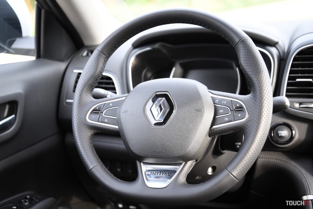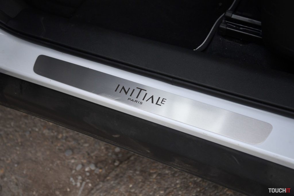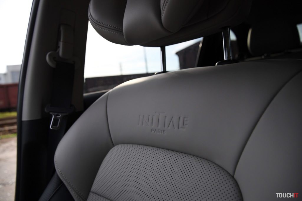 Výbava Initiale Parisje najvyššia, ale stále existuje viacero prvkov, za ktoré si budete musieť priplatiť. Interiér je spracovaný dobre, pôsobí luxusne, ale má pár nedostatkov. Pochvalu si zaslúži komfortné sedenie a kvalitná koža, ktorá pokrýva sedadlá a menšie prvky interiéru. Koža je na sedadlách perforovaná a vyhotovená v dvoch farbách, ktoré sú spojené tieňovaním. Vyzerá to luxusne. Perforovanie je prítomné vďaka funkcii odvetrávania sedadiel. Samozrejmosťou je vyhrievanie predných, ale aj zadných bočných sedadiel. Ovládanie ohrevu zadných sedadiel je špecificky zakomponované do lakťovej opierky. Aby to bolo kompletné, tak vyhrievaný je aj volant a čelné sklo (Pack Winter Initiale Paris). Palubnej doske dominuje hlavne stred, v ktorom je osadený veľký dotykový LCD displej s informačno-multimediálnym systémom R-Link 2. Displej je uložený vertikálne a nastavený neutrálne. To my trošku prekážalo, prijal by som väčšiu orientáciu na vodiča.