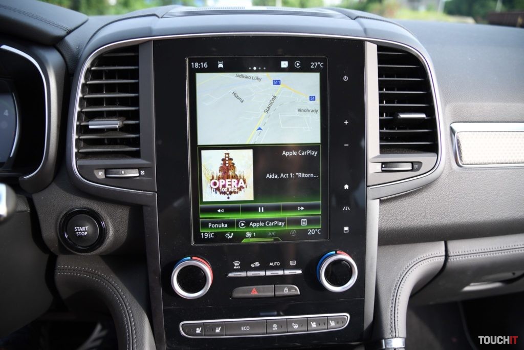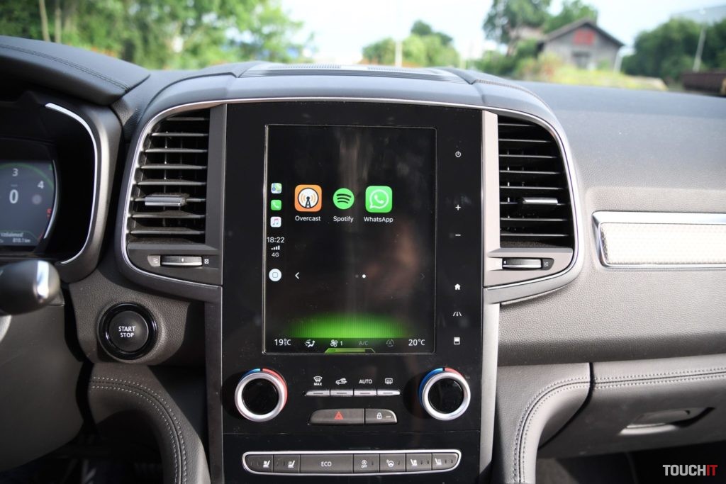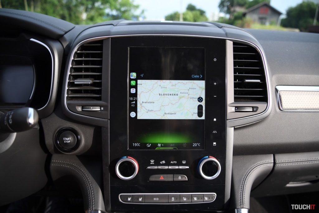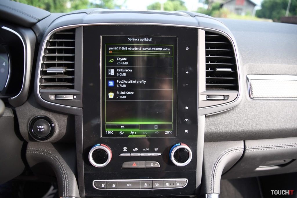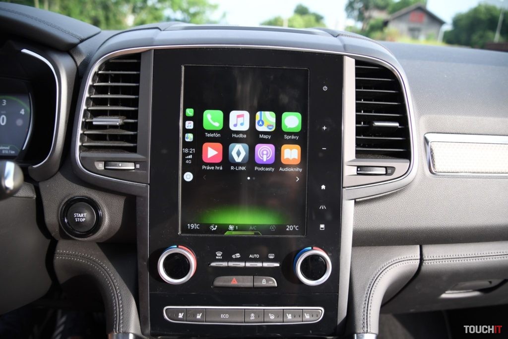 Základom celého systému je vertikálne uložený, 8,7“, dotykový LCD displej s dotykovými tlačidlami po jeho pravej strane. Umiestnený je v strede palubnej dosky a nijako nebráni výhľadu z vozidla. Nevkusne pôsobia iba veľké a nijak nevyužité rámiky okolo displeja. Pred šoférom je digitálny prístrojový panel (7“), na ktorom sa zobrazujú všetky elementárne informácie o stave a prevádzke vozidla. Prístrojový panel vie meniť aj grafiku – po aktivácii režimu ECO alebo po aktivácii režimu SPORT, resp. aktiváciou manuálneho radenia. Po bokoch displeja sú analógové ukazovatele stavu paliva a teploty chladiacej kvapaliny. Veľký displej v strede palubnej dosky disponuje inovovaným systémom R-Link 2, ktorý pracuje celkom dobre. Prijal by som však rýchlejšiu odozvu systému.