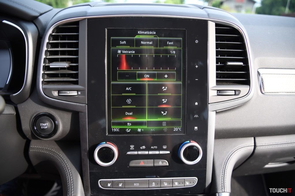 Pri zatváraní kufra mi chýbalo tlačidlo, ktoré by automaticky uzamklo aj celé auto. Ešte dodám, že všetky okná sú elektricky ovládané, ale iba vodičové má automatické doťahovanie – tento základný prvok by malo obsahovať každé nové auto! Samozrejmosťou je aj bezkľúčový prístup a štartovanie. Bezkľúčové otváranie je pomocou tlačidla na šoférových a spolujazdcových dverách. Kľúč v tvare karty je pre Renault typický a v tomto prípade nechýba ani funkcia Welcome Scenario (ak sa priblížite k vozidlu, vyklopia sa spätné zrkadlá a auto sa odomkne, ak sa vzdialite, zamkne sa).Multimediálny a informačný systém