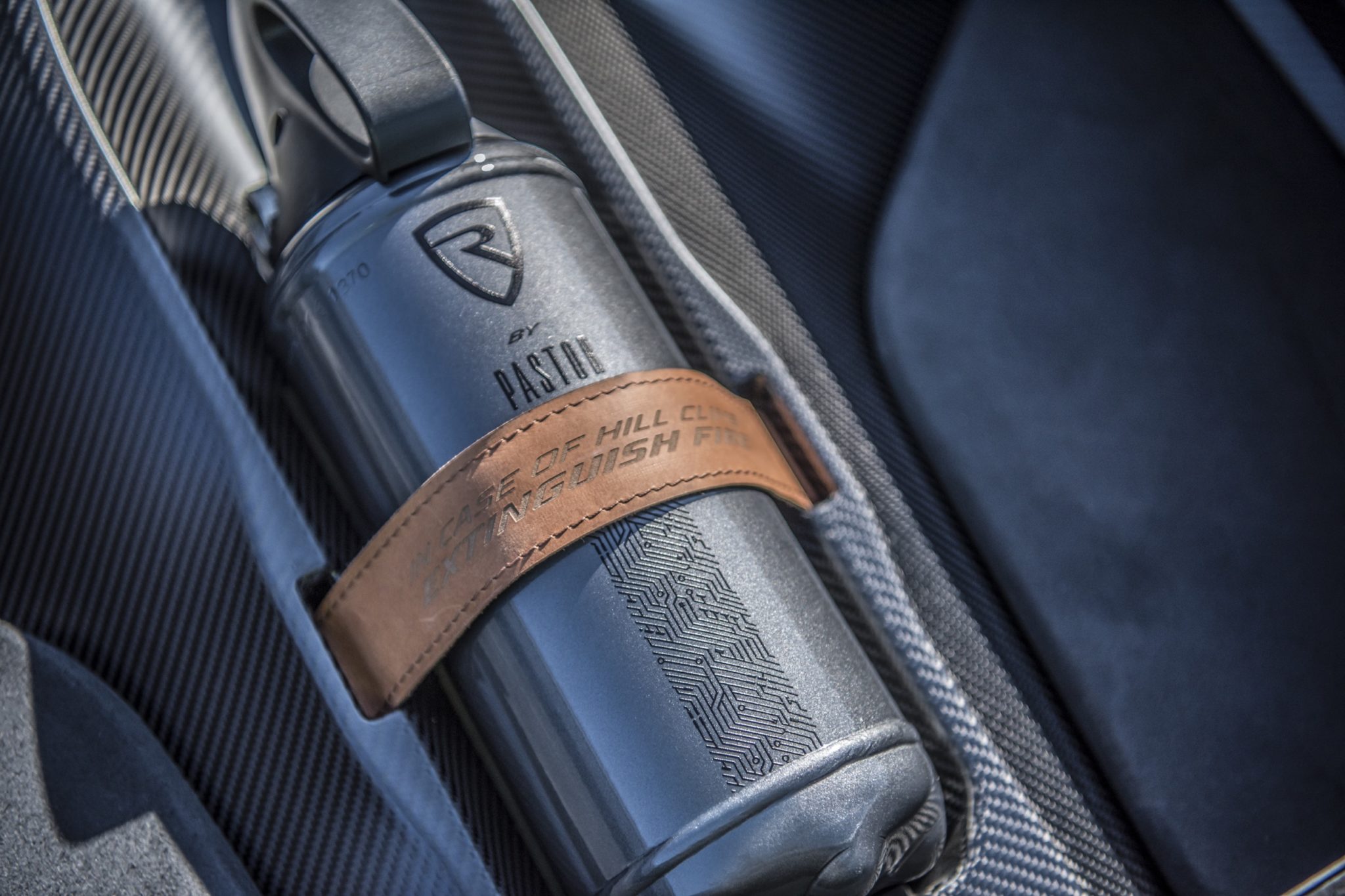 Automobilka si zachovala aj zmysel pre humor, nakoľko pod zadné sklo zakomponovala hasiaci prístroj s nápisom v zmysle – použite v prípade havárie pri pretekoch do vrchu. Ak by ste nevedeli prečo, tak Richard Hammond (hviezda z relácie TOP GEAR alebo The Grand Tour) dal RIMAC CONCEPT ONE do smútku pri odvážnej testovacej jazde. Auto sa po prevrátení vznietilo, ale Hammond vyviazol iba so zlomenou nohou.