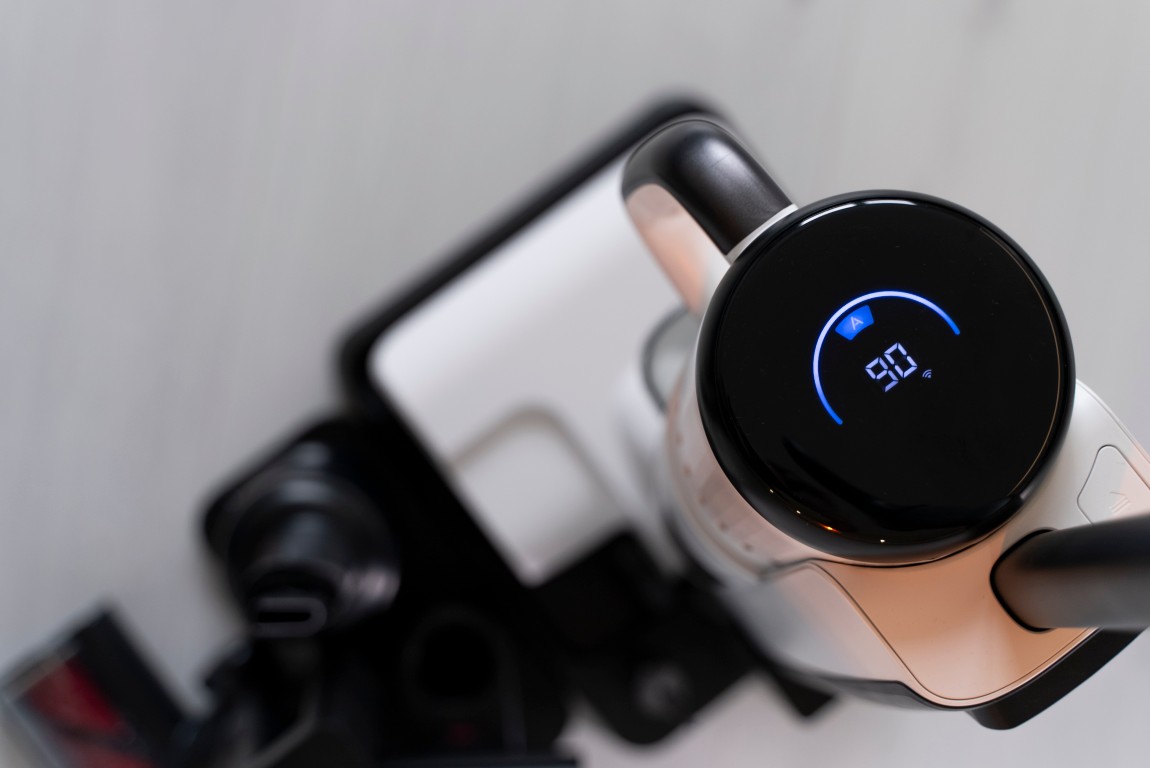 Zvolený režim mopovania a tiež úroveň znečistenia podlahy vidíte na displeji v hornej časti mopovacej jednotky. O výbere čistiaceho režimu vás informujú aj zvukové hlášky – ktoré sú aspoň v čase písania tejto recenzie zatiaľ iba v angličtine a iných cudzích jazykoch. Češtinu ani slovenčinu tam nenájdete.