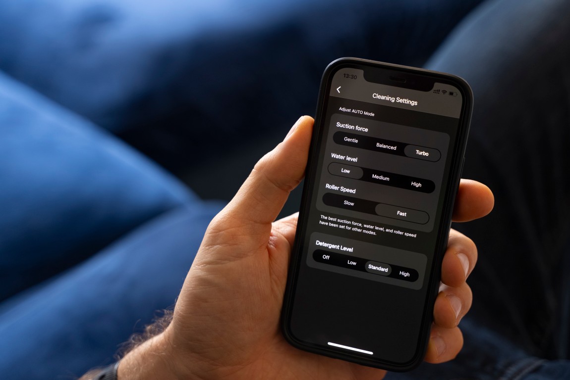 Asi to najdôležitejšie je, že si môžete prispôsobiť samotné mopovanie – napríklad silu odsávania, množstvo použitej vody, rýchlosť otáčania rotačných valcov či množstvo dávkovaného čistiaceho prostriedku. Rovnako dokážete nastaviť, ako sa má mopovač správať po vložení do dokovacej stanice – či sa má vyčistiť a vysušiť, alebo všetky tieto procesy spustíte ručne.