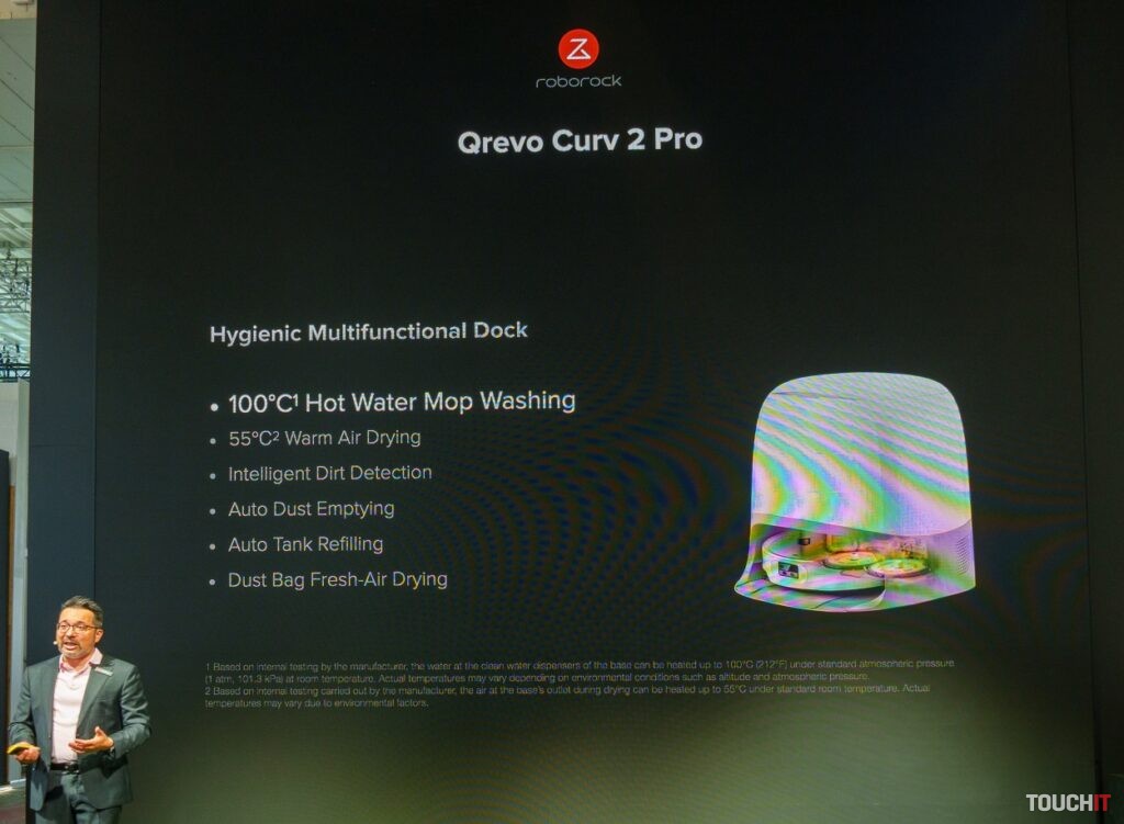 IFA 2025 bola tiež miestom predstavenia najnovšieho zariadenia s označením Roborock Qrevo Curv 2 Pro. Toto zariadenie poskytuje výkonné a adaptívne čistenie, kombinuje najmodernejšiu technológiu s elegantným dizajnom. Zariadenie nielenže disponuje sacím výkonom až 25 000 Pa HyperForce čo je jedným z najvyšších sacích výkonov vo svojej triede, ale má aj vylepšený podvozok AdaptiLift.