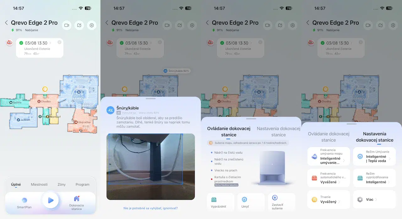 Dnešné robotické vysávače, najmä z prémiového segmentu, kam patrí aj Roborock Qrevo Edge 2 Pro, sú komplexné zariadenia. Počas upratovania si umývajú mopovacie kotúče alebo ich odpoja a nechajú v dokovacej stanici, keď idú vysávať koberec. Vysávač tieto činnosti oznamuje a vďaka zvukovým hláseniam v slovenčine im budete rozumieť.