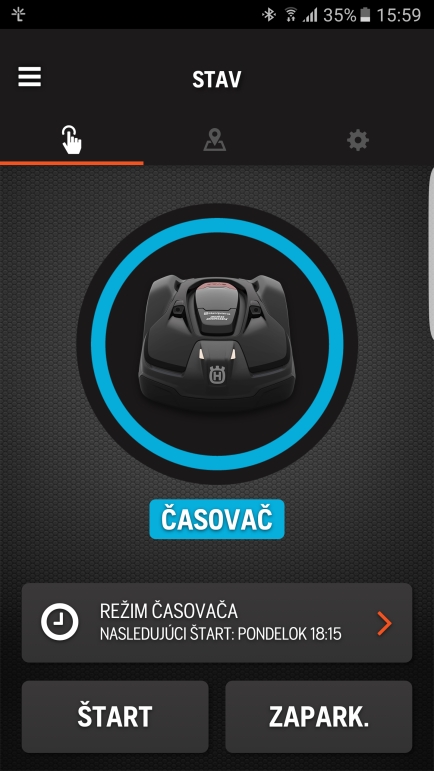Kosačka Husqvarna Automower 450X bola v našom prípade vybavená aj blokom Connect. Tento umožňuje komunikovať s kosačkou cez mobilnú aplikáciu pre iOS a Android. Pomocou aplikácie nastavujete časovač, ale aj výšku kosenia, prah prekročenia ohraničujúceho káblu kosačkou a ďalšie detailné parametre. Výborné je, že cez aplikáciu ale aj cez SMS dostanete správu, ak by sa kosačka dostala na iné miesto, než je jej vyhradená plocha. To platí aj vtedy, ak je kosačka vypnutá. Súčasťou komunikačného bloku je aj mobilné pripojenie na internet a takto kosačka s vami komunikuje z akéhokoľvek miesta.