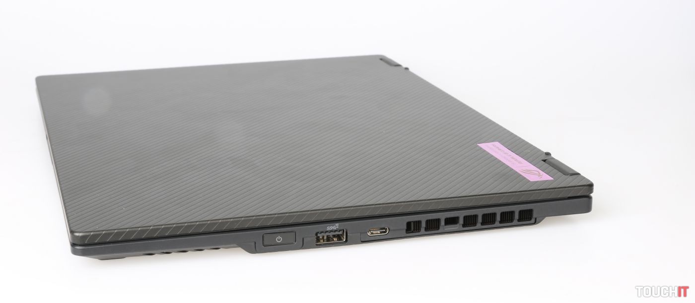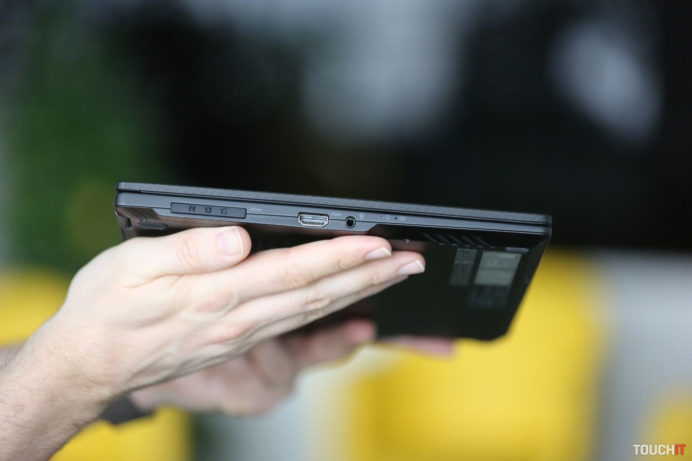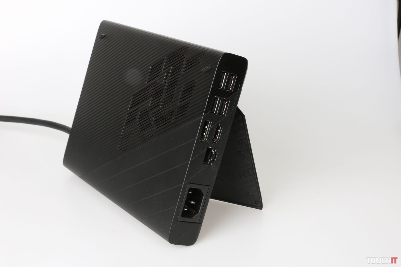 Z praktického hľadiska oceňujeme napájanie cez USB-C. Súčasťou balenia je 100 W adaptér, použiť však môžete aj menej výkonný adaptér či iné USB-C nabíjačky. Portová výbava je základná – pozostáva z HDMI, USB a USB-C portu. K dispozícii je tiež špeciálny port na pripojenie externej dokovacej stanice ROG XG Mobile.